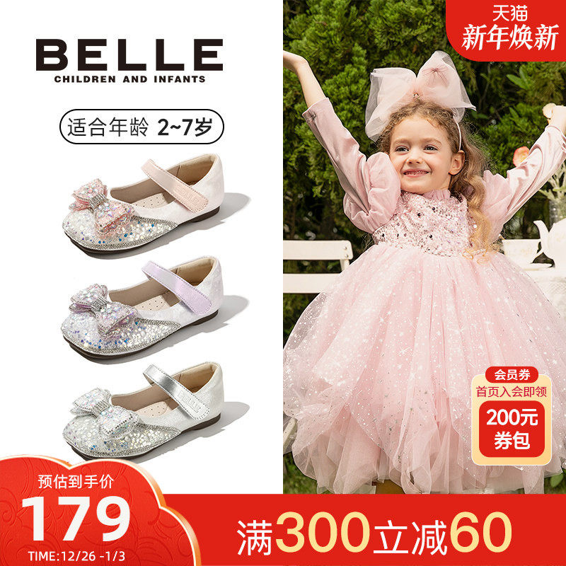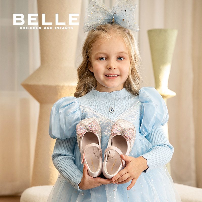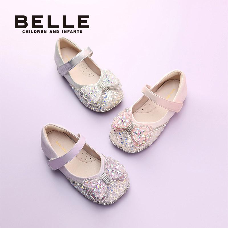 百丽童鞋2025秋冬新女童水晶公主鞋闪钻爱莎女孩单鞋优雅女宝皮鞋