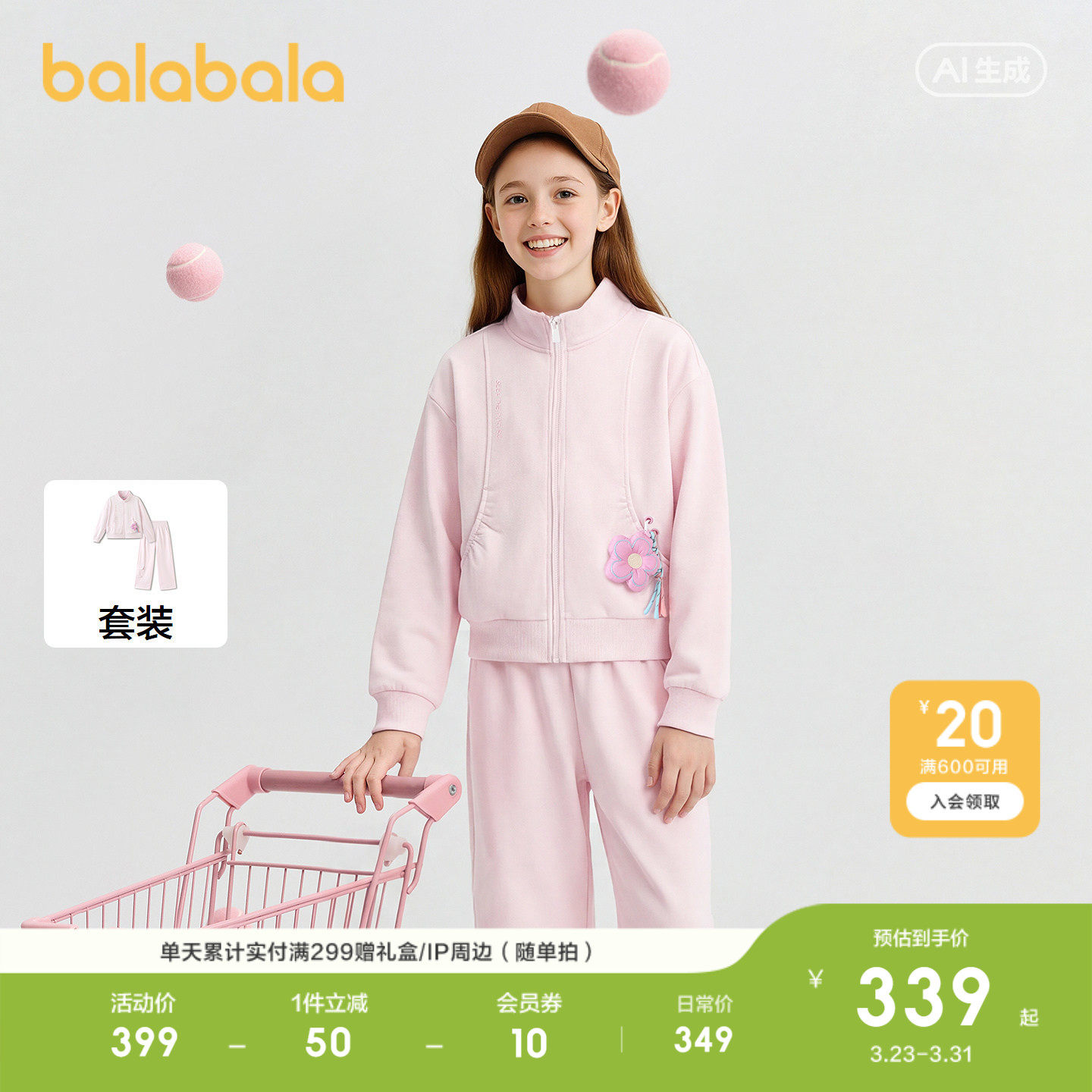 【商场同款】巴拉巴拉童装儿童套装两件套女童2026新款春吸湿排汗