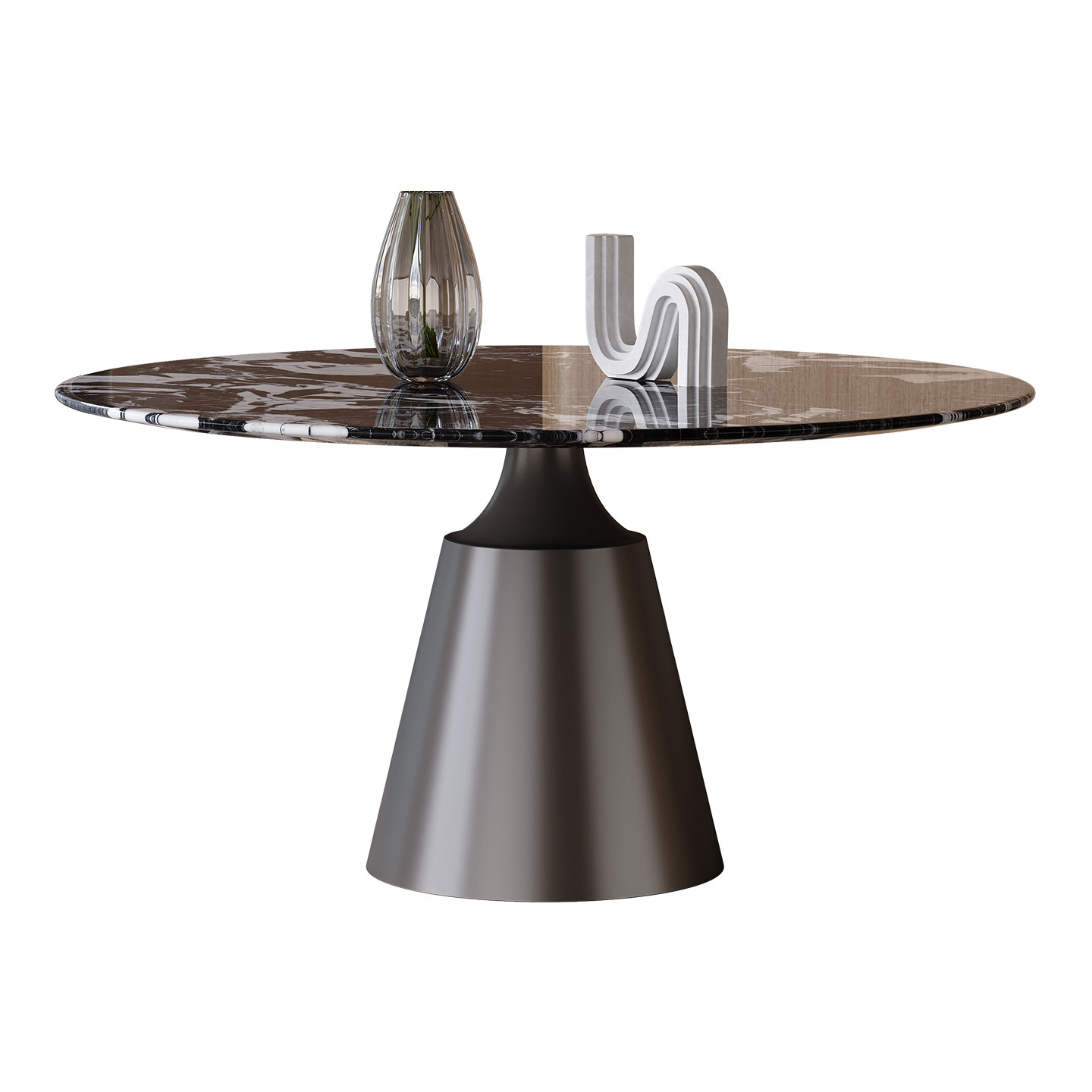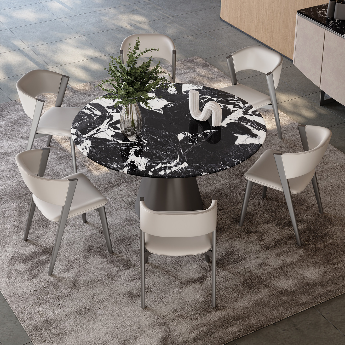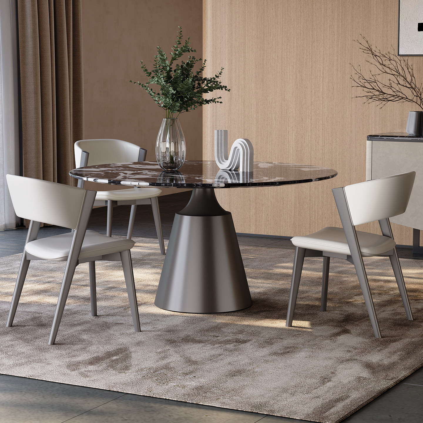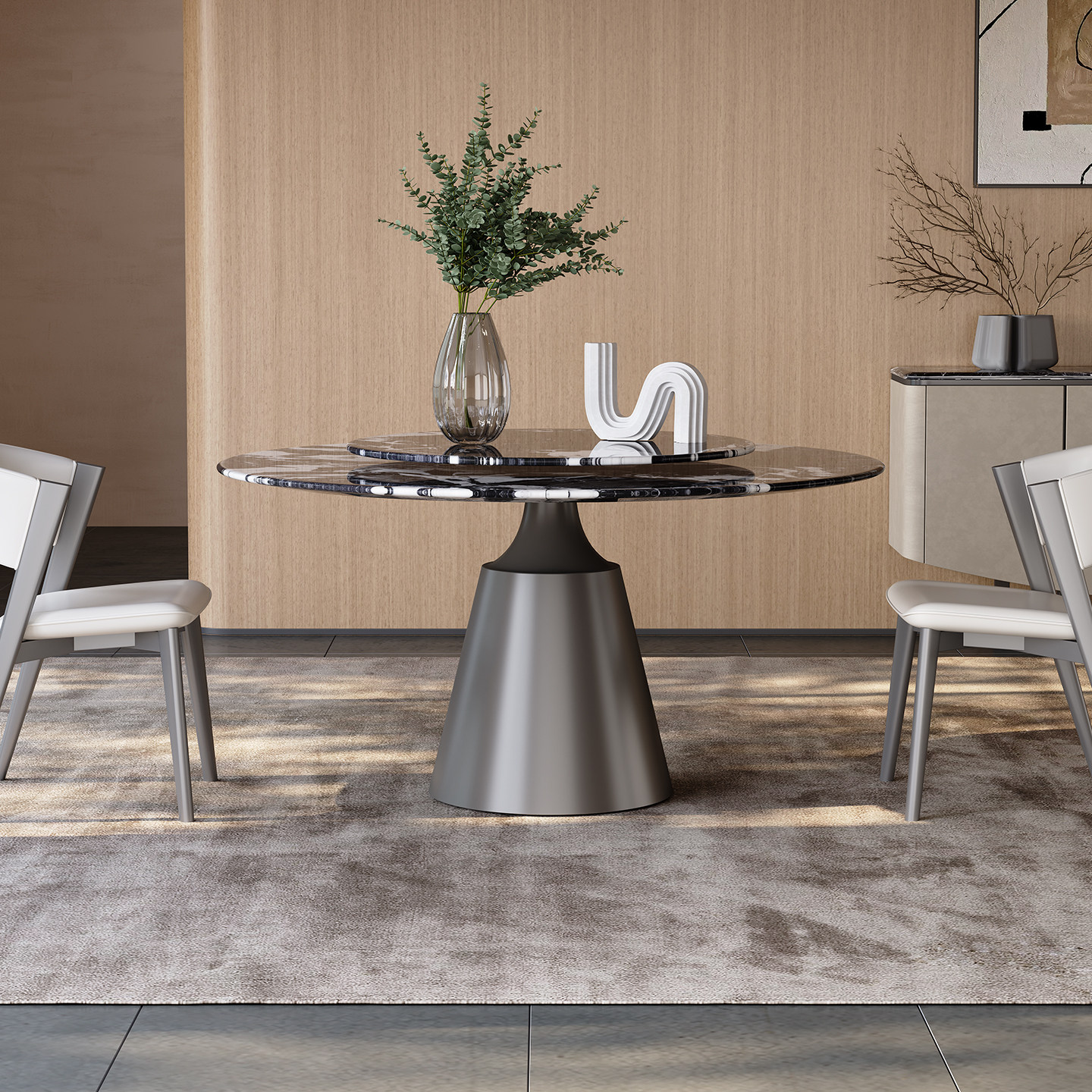 天然大理石圆桌带转盘餐厅家用高级感意式轻奢进口宝格丽奢石餐桌