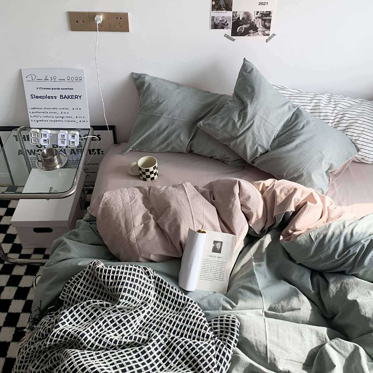 ins床上用品四件套纯棉全棉床单被罩被套床笠学生宿舍单人三件套4