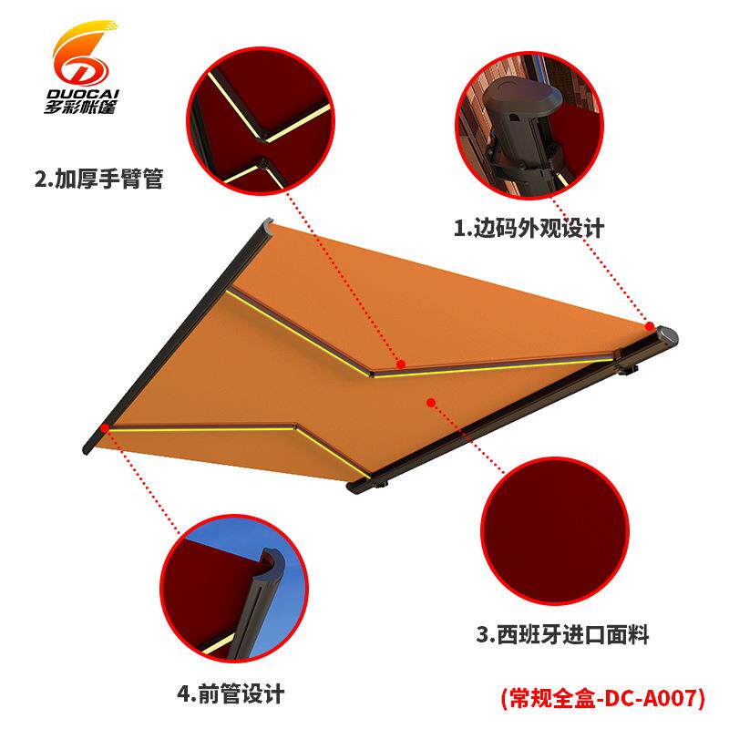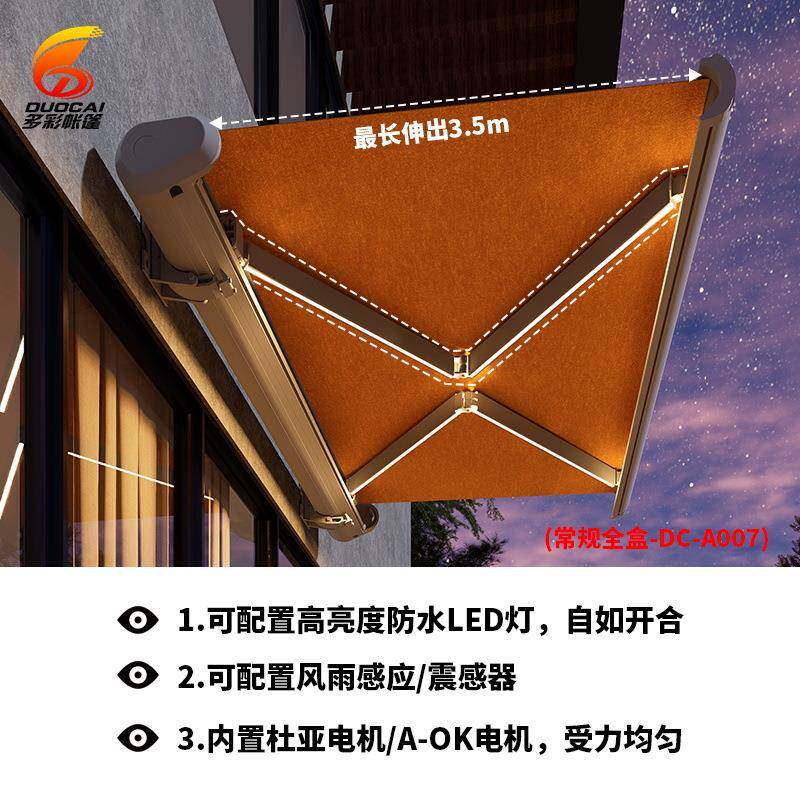 户外全盒遮阳棚电动折叠伸缩式雨蓬阳露台带灯篷庭院家用别墅雨棚