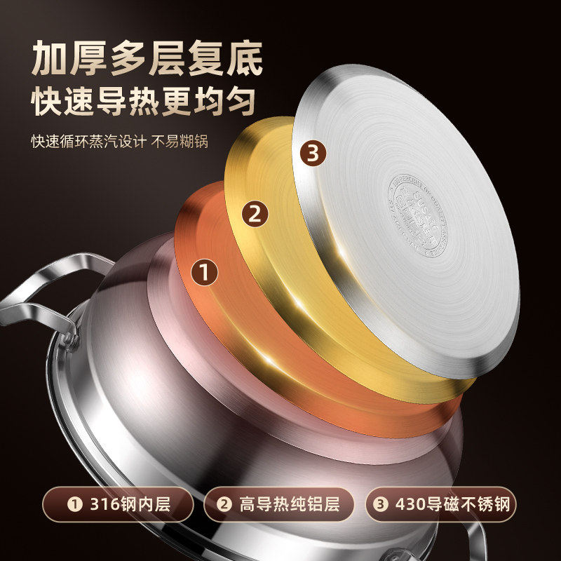 苏泊尔加厚316不锈钢汤蒸火锅家用食品级单层蒸锅燃气电磁炉蒸煮Y