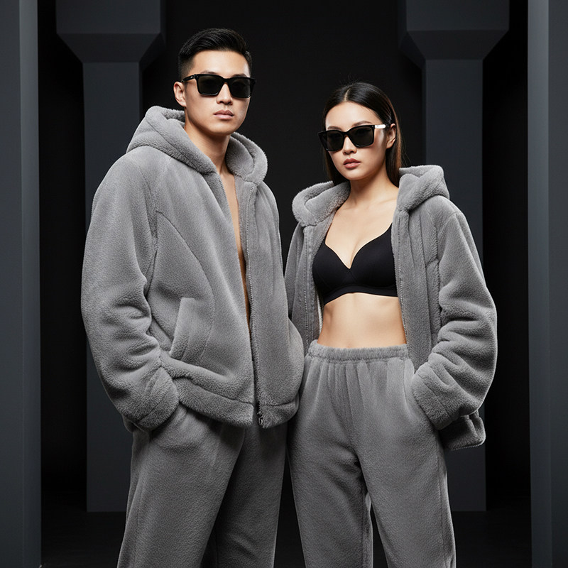 肖战同款猫人暖绒绒家居服半边绒男女2025新款冬季睡衣可外穿加厚