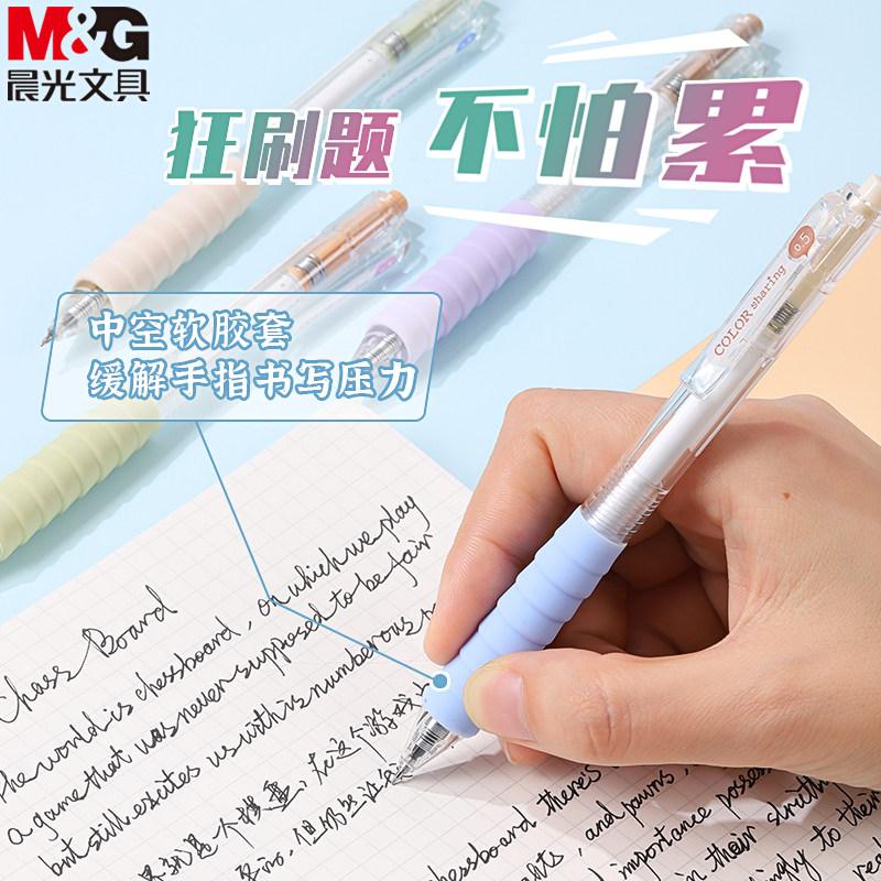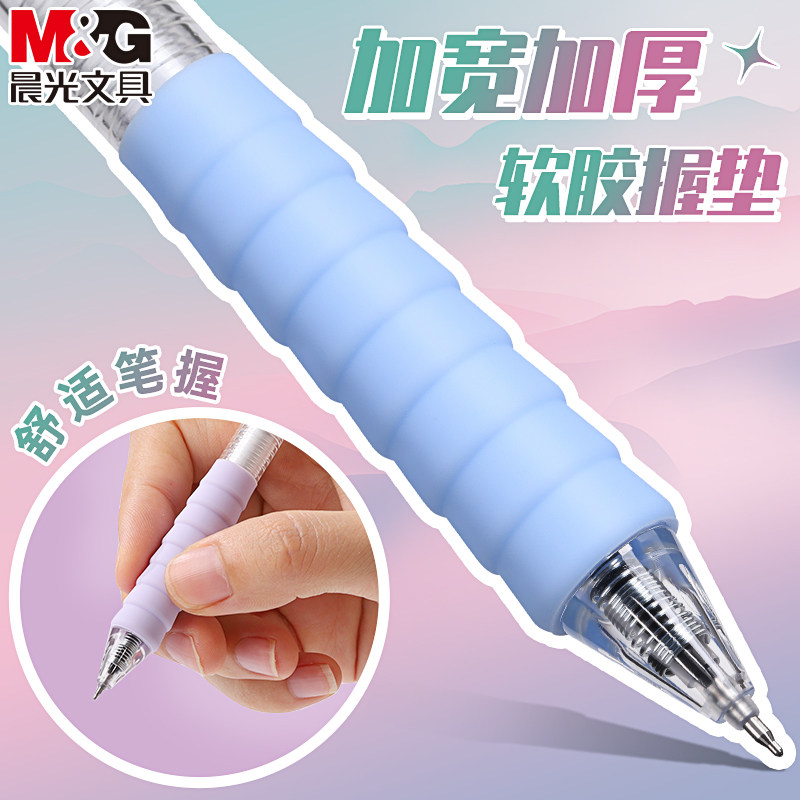 晨光彩色云握手按动中性笔st笔头作业神器舒适软胶高颜值多巴胺黑笔红笔速干顺滑学霸刷题专用学生用按压式