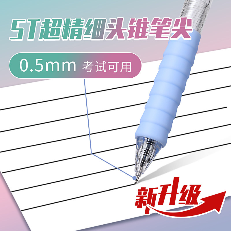 得力刷题笔速干st头透明考试笔考研考公学生用文具黑色0.5刷题备考专用笔中高考高颜中性笔碳素考按动式透明