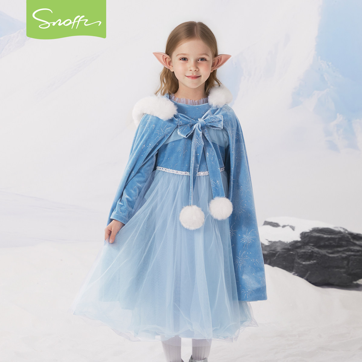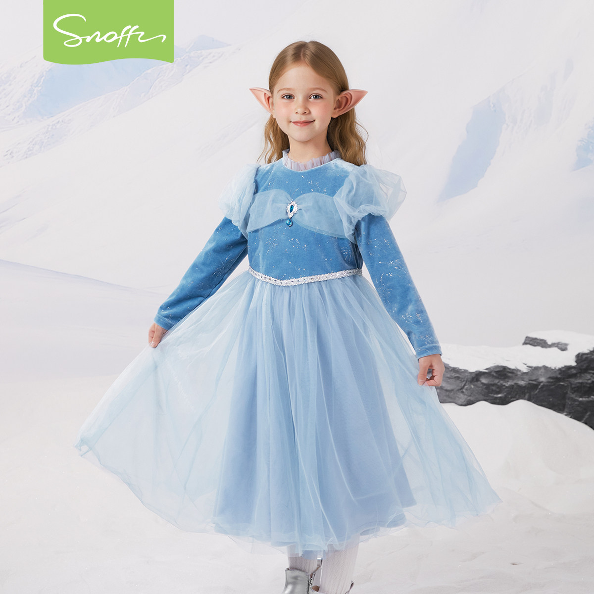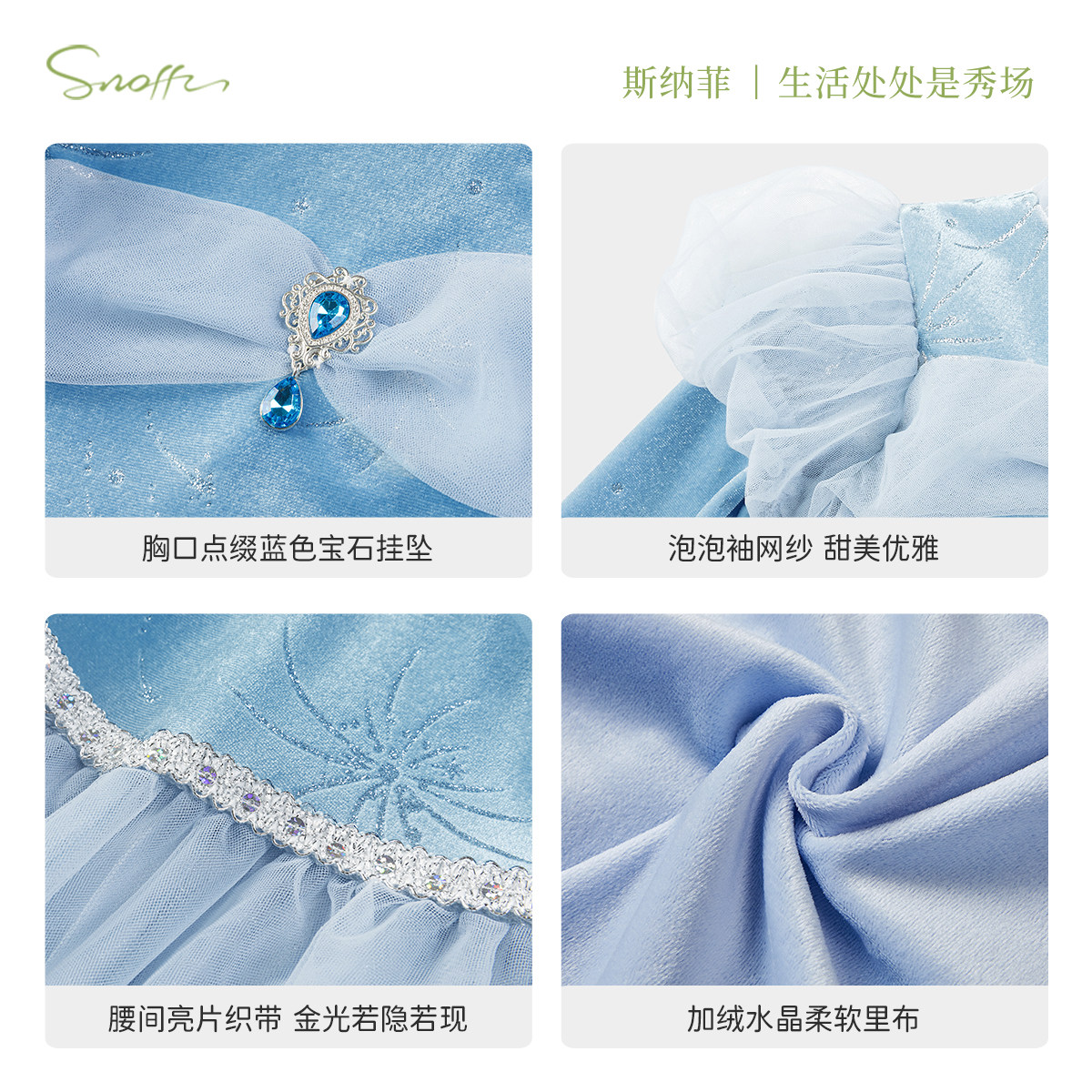 斯纳菲女童连衣裙秋冬新款女宝周岁生日礼服爱莎加绒公主裙冬装裙