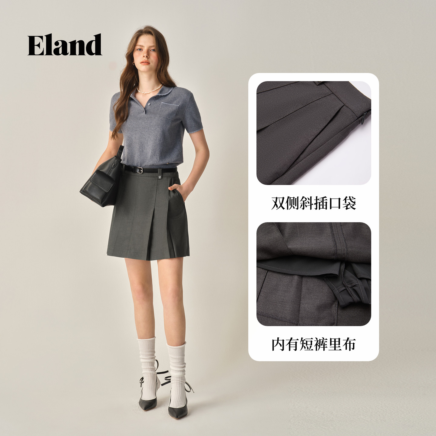 【优可丝】Eland衣恋半身裙女学院风收腰显瘦短裙2025冬季新款