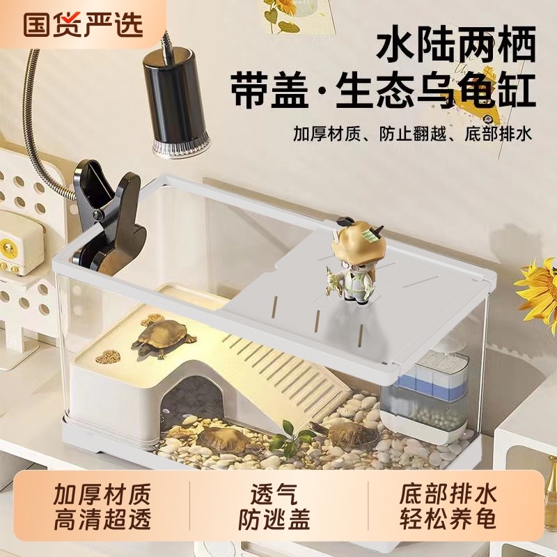 桌面乌龟缸生态造景带晒台爬台亚克力家用新款小型养龟专用饲养箱