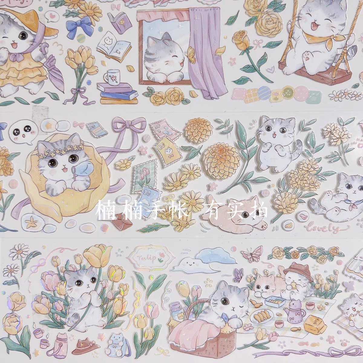 整卷 E厘米 柠檬塔罗胡桃海洋金鱼喵日葵PET虹光胶带和风可爱猫咪