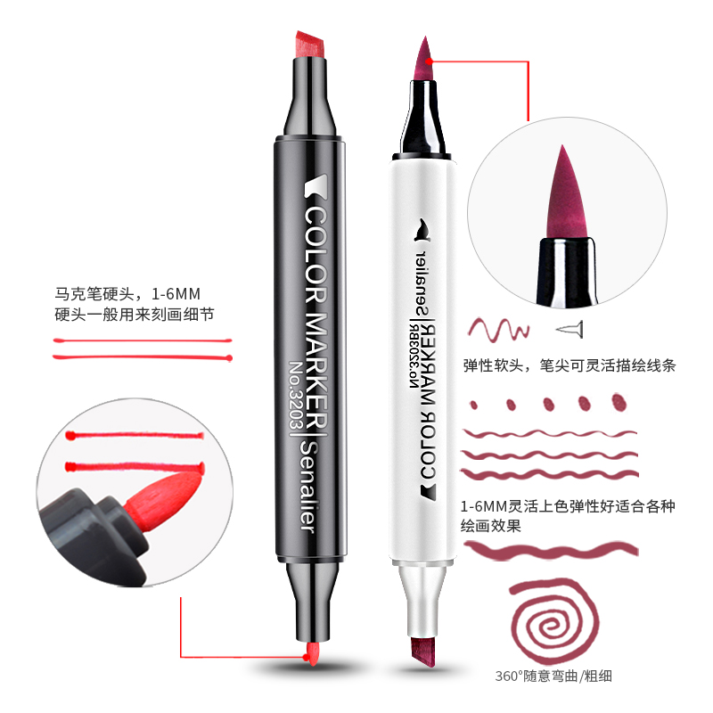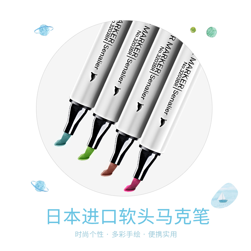 日本Senalier申内利尔软头马克笔单支自选单只进口0号色无色黑色肤色手绘专业动漫马克笔套装正品学生touch