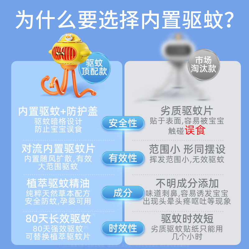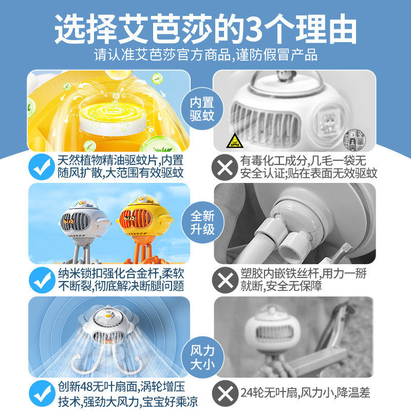 【可摇头可驱蚊】婴儿车小风扇小型八爪鱼无叶儿童吹辅食外出专用充电户外静音婴儿床夹子式遛娃神器2026新款
