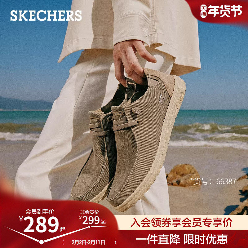 Skechers斯凯奇男鞋春季一脚蹬乐福鞋帆布鞋厚底低帮休闲商务鞋