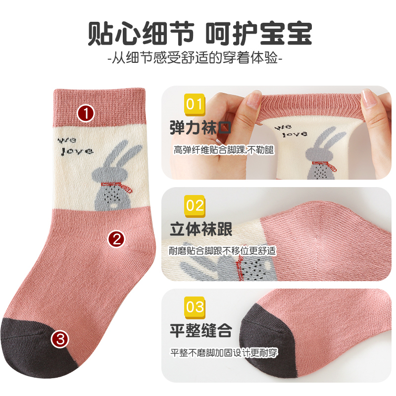 纯棉童袜春秋款夏季薄款防臭不起球男女袜子全棉中筒袜时尚儿童袜