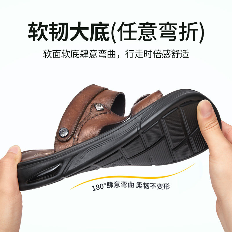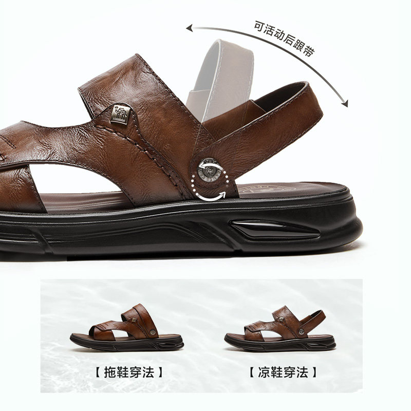 老人头凉鞋男2025夏季牛皮休闲外穿沙滩鞋真皮防滑中老年爸爸拖鞋
