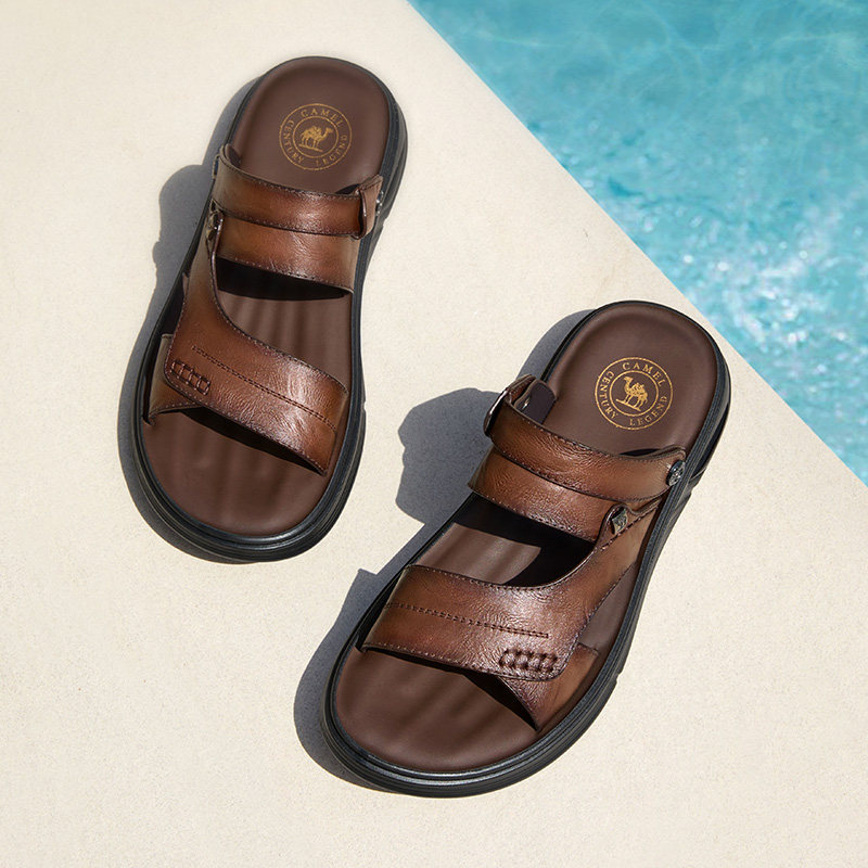 骆驼男鞋2025夏季新款新款舒适软底真皮透气凉拖商务休闲凉鞋男士