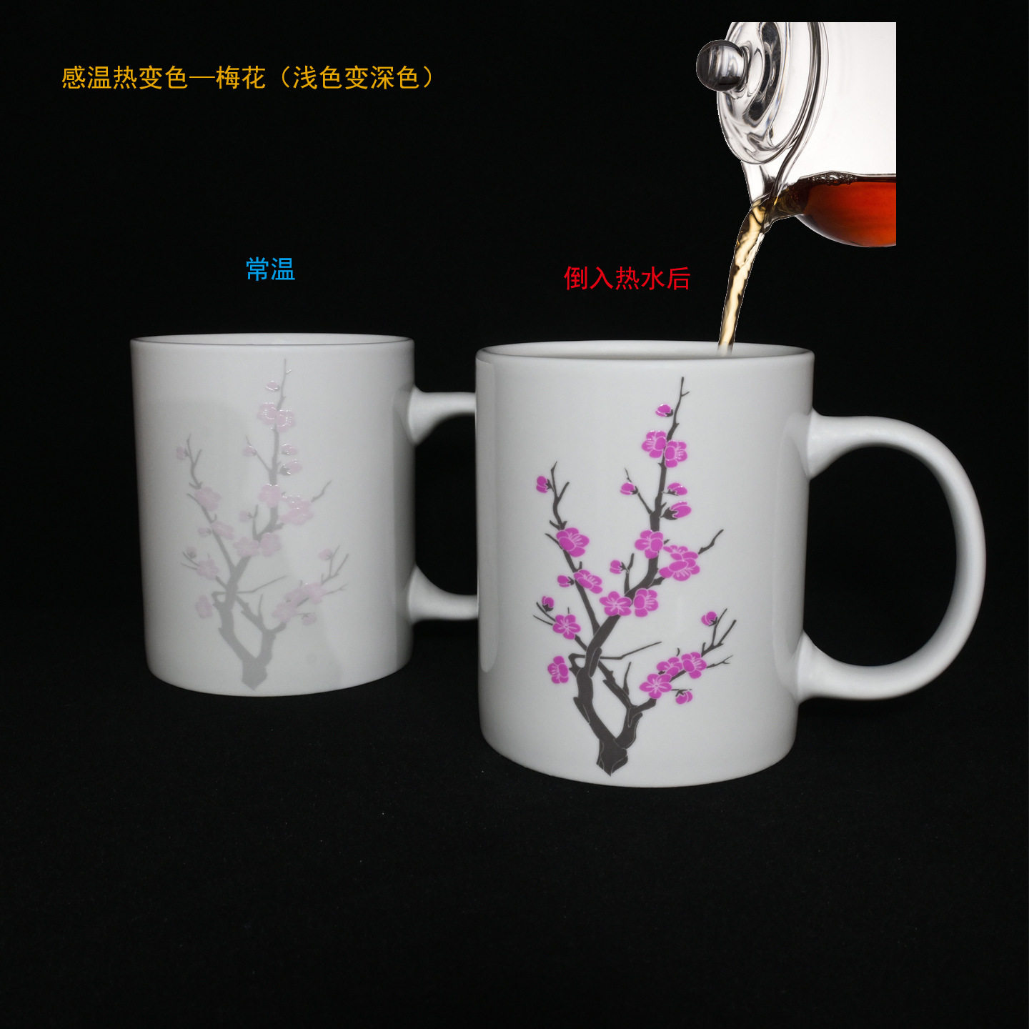 陶瓷茶杯水杯SGS食品级感温双变色梅花桃花樱花变色清酒杯主人杯