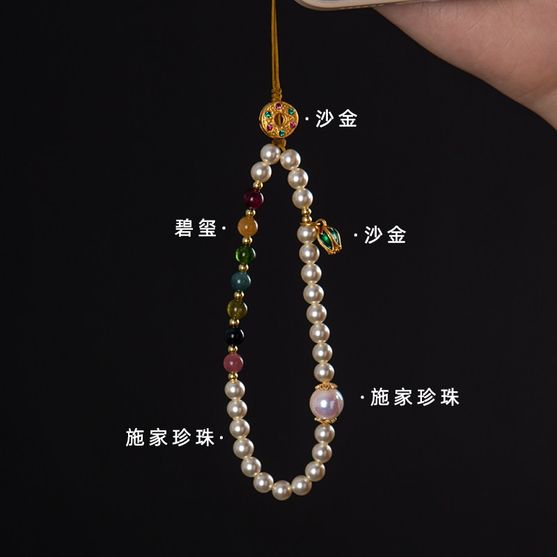 手机链碧玺珍珠手机挂件防丢挂绳手腕高级感女生精致水晶女士礼物