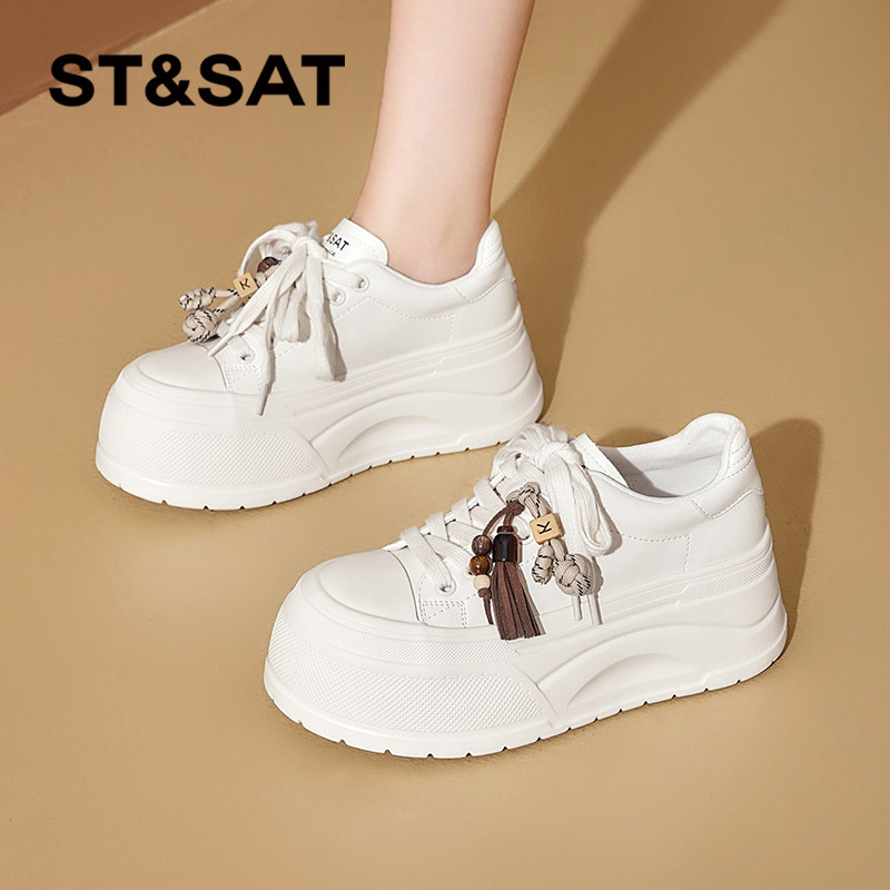 星期六厚底小白鞋女款2025新款秋季女鞋轻便增高百搭软底运动板鞋