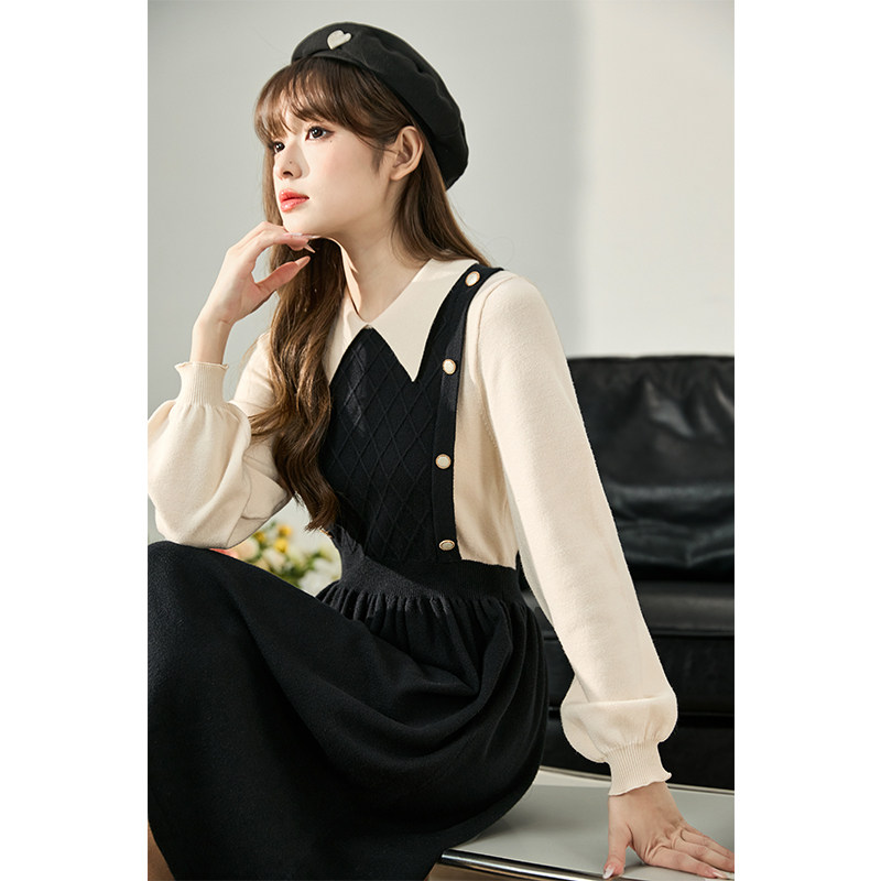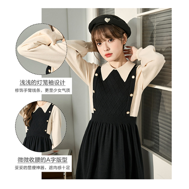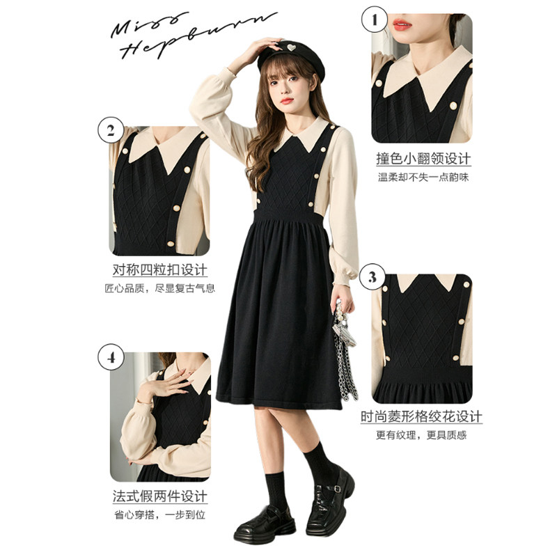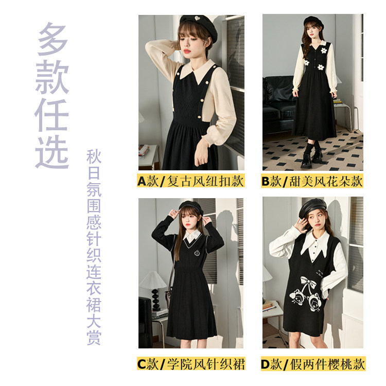 唐狮黑色连衣裙女秋冬假两件针织裙秋款女小个子冬季裙子毛衣裙