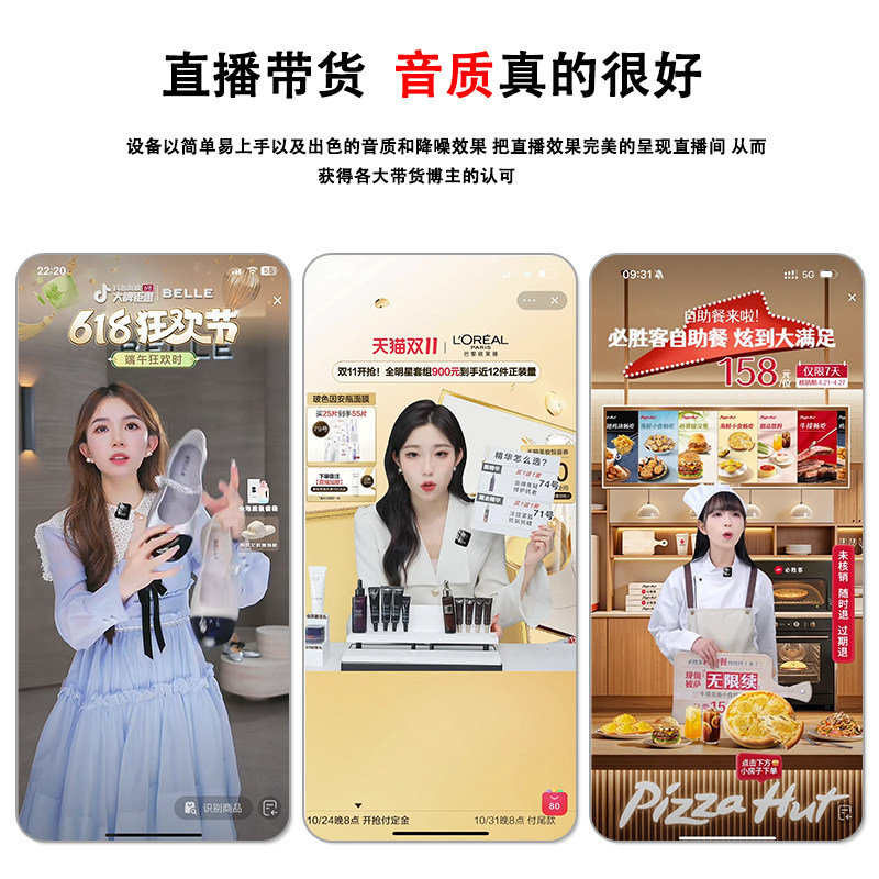 无线领夹麦收音麦克风小蜜蜂直播带货声卡设备户外拍视频专用降噪