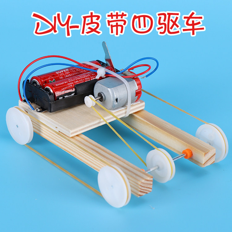 极速皮带四驱车小制作 DIY科技发明学生科学实验手工材料儿童教具