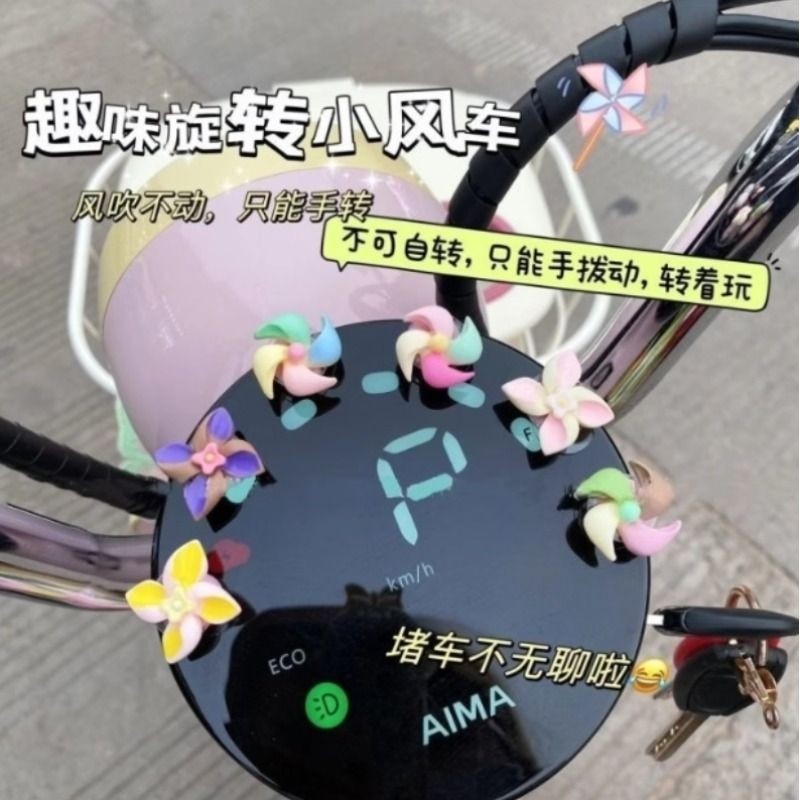 电动车迷你小风车装饰摩托自行车治愈系车载饰品摆件小配件可爱