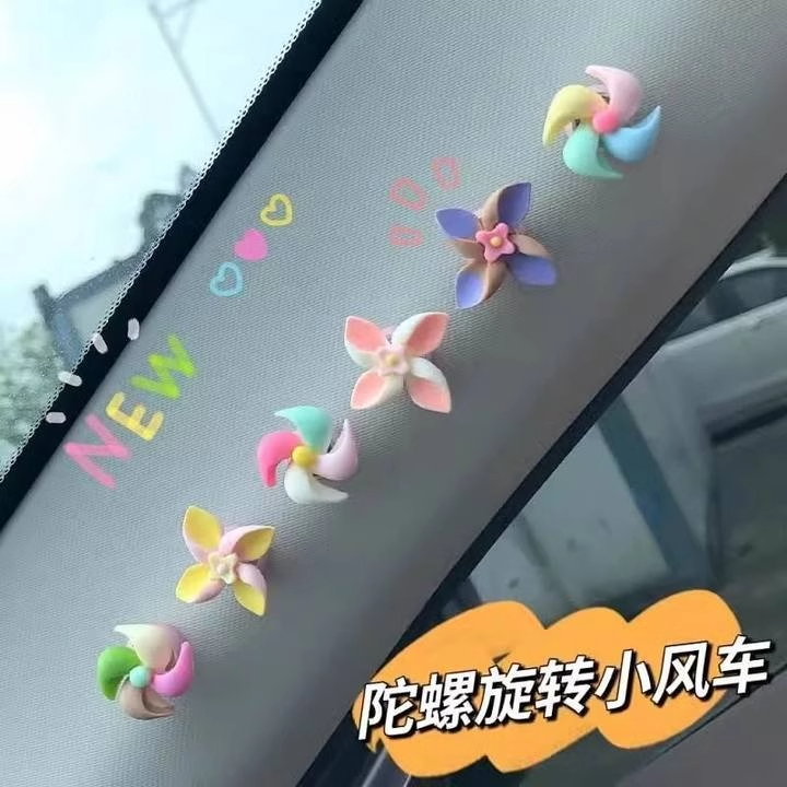 车载新款小风车旋转陀螺创意装饰贴小摆件中控台车内饰品女士可爱