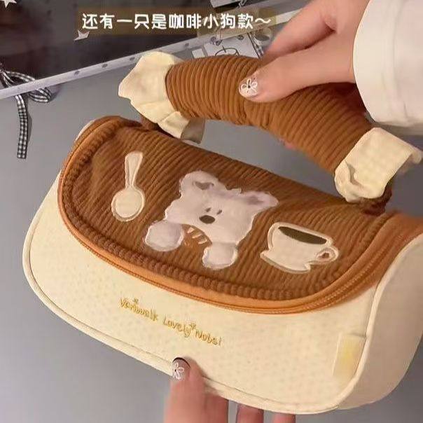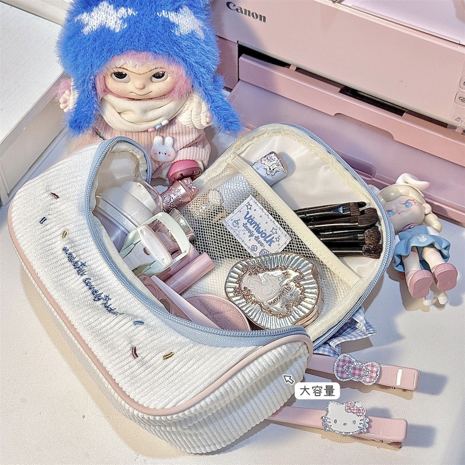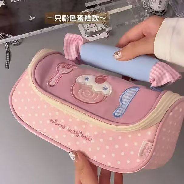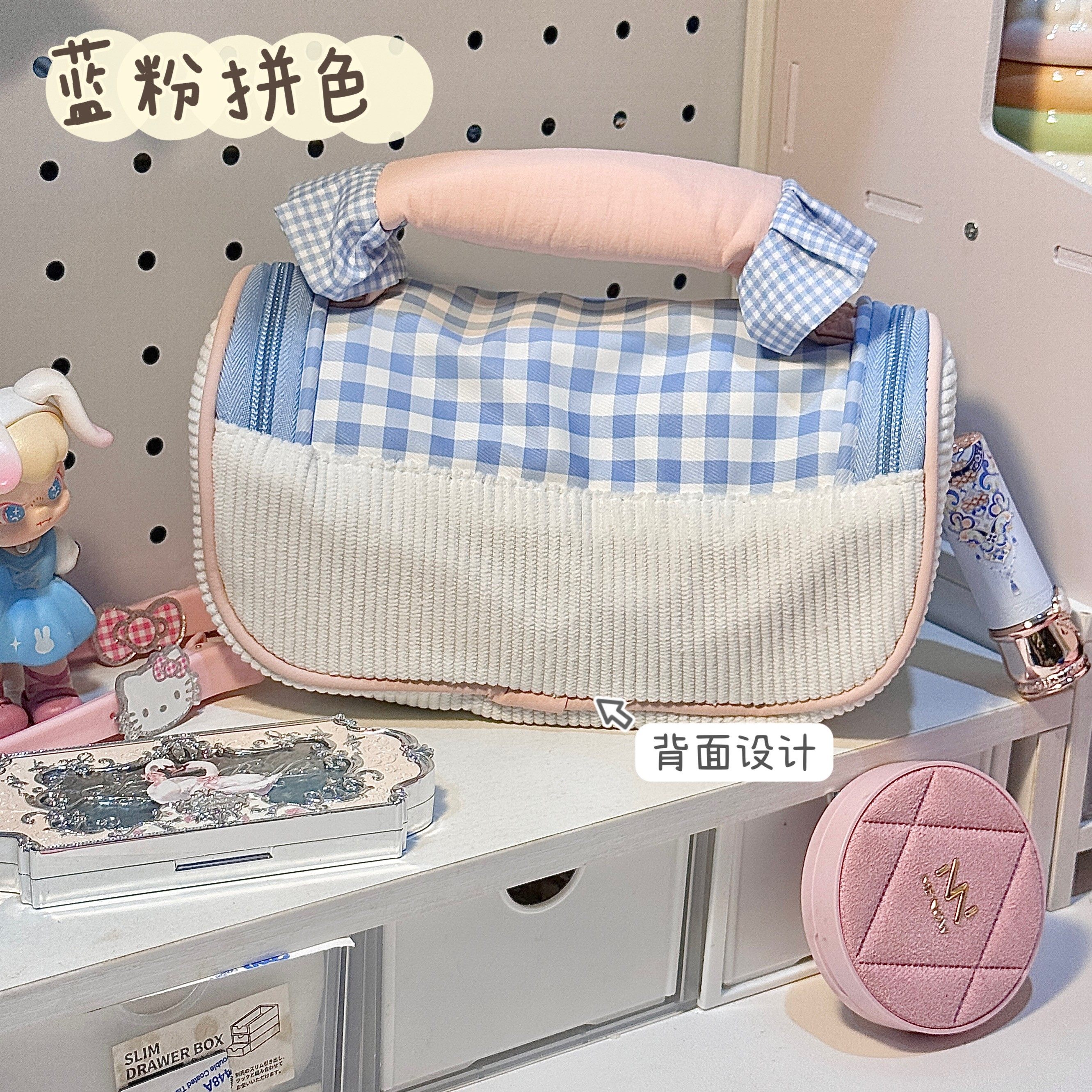 日系小红书马卡龙色系笔袋可手提化妆包大容量少女可爱卡通收纳袋