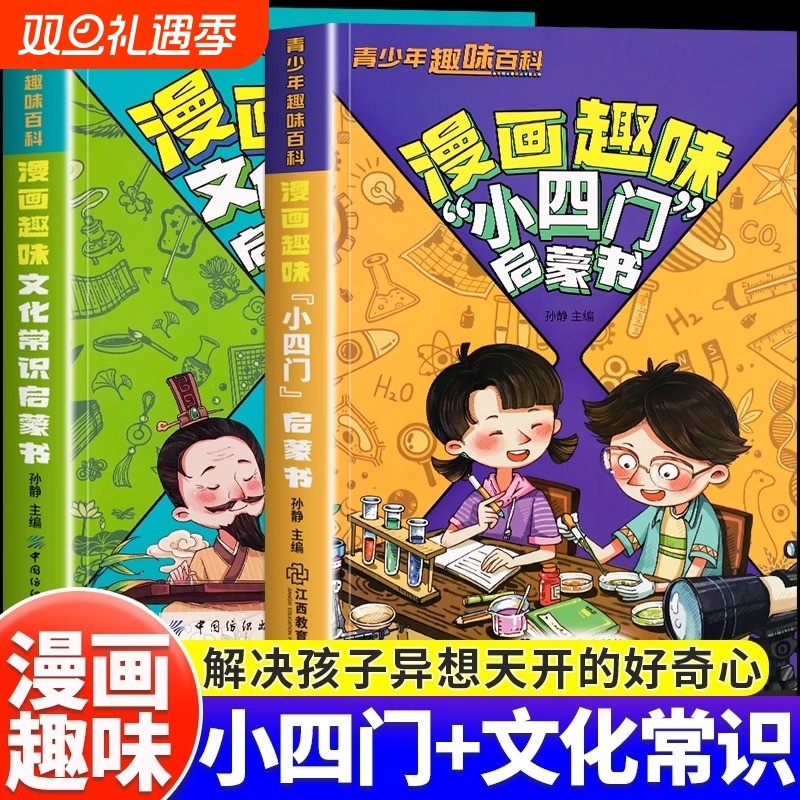 漫画小四门趣味启蒙书正版物理化学生物地理孩子爱看的儿童百科全书小学生必背中国古代文学常识中华文化一千问科学阅读