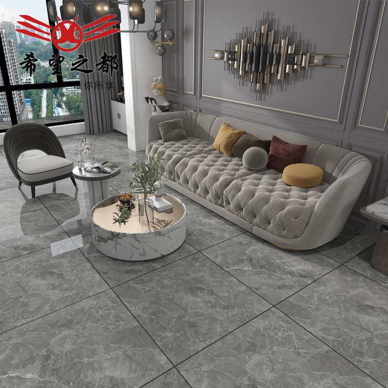 客厅地砖900x900连纹通体大理石瓷砖灰色现代简约客餐厅地板砖