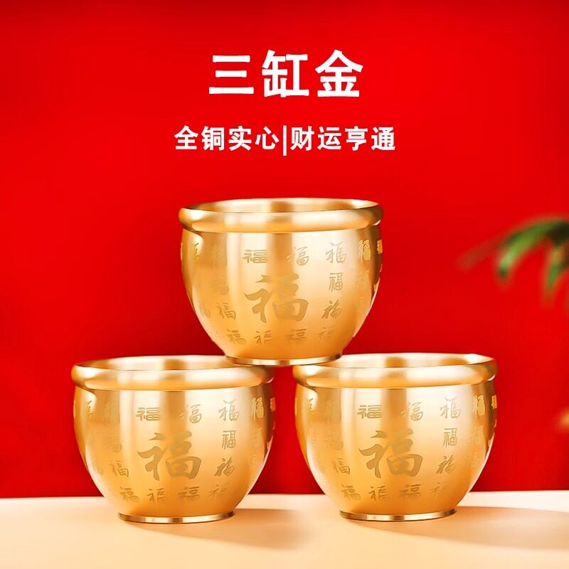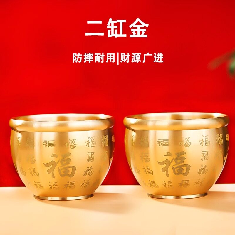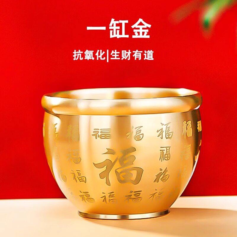 黄铜米缸聚财百福缸大号招财进宝聚宝盆创意手工礼物办公室小摆件