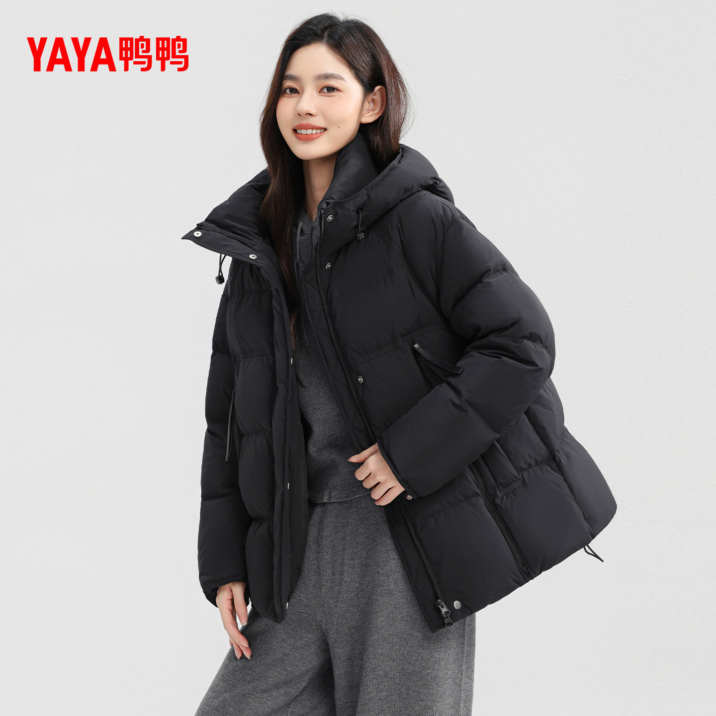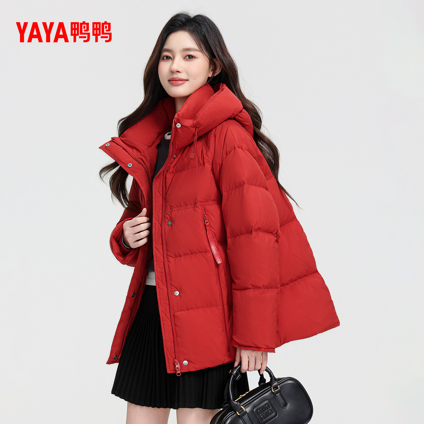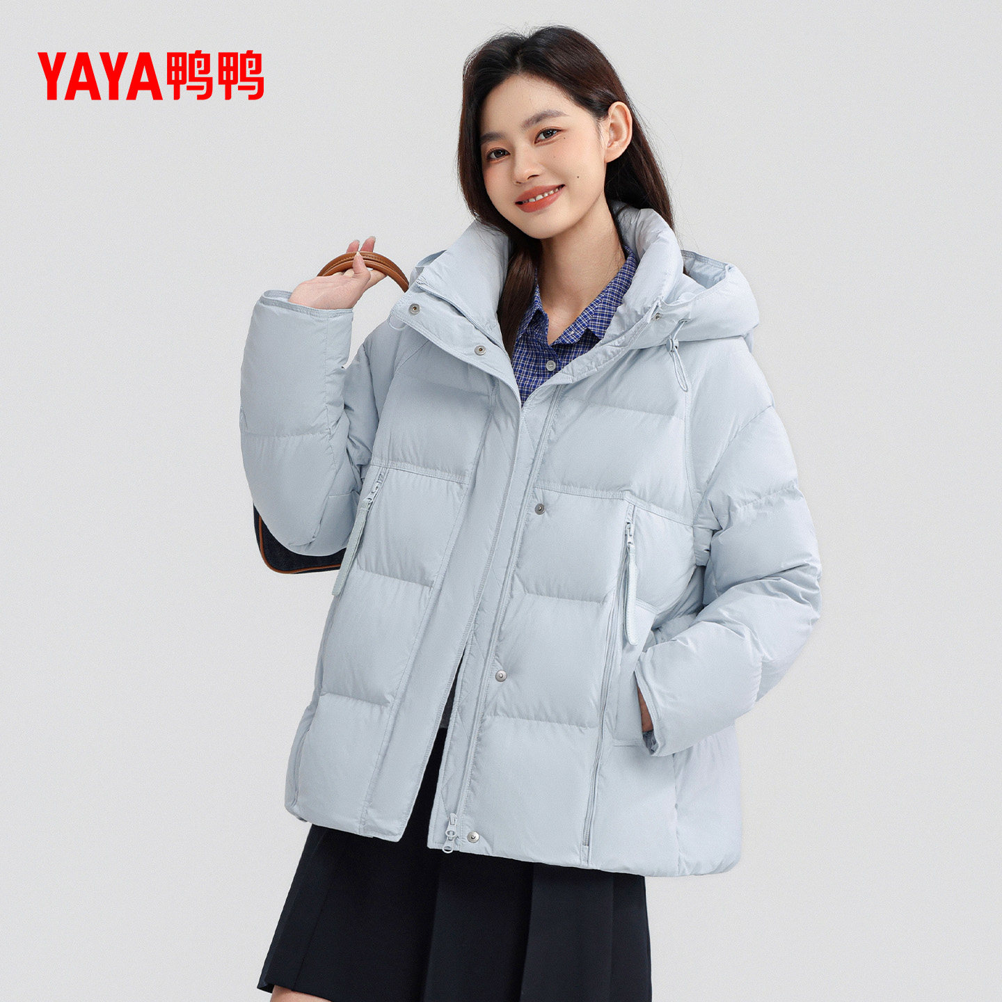 鸭鸭羽绒服女士2025年冬季新品短款小个子时尚连帽保暖百搭外套F