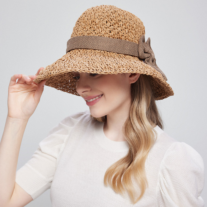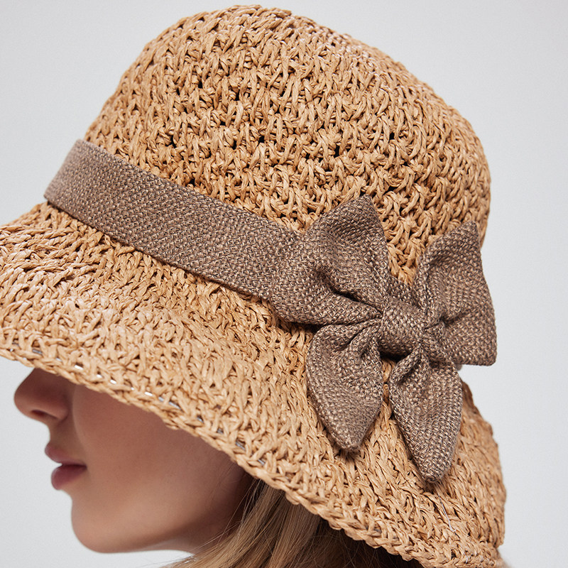 Classy key新加坡设计师联名款渔夫帽蝴蝶结帽子女夏手工编织草帽
