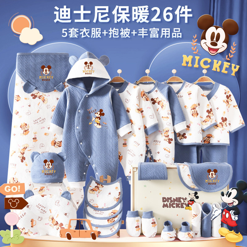 迪士尼婴儿礼盒秋冬季新生儿衣服男女宝宝套装满月送礼物用品大全