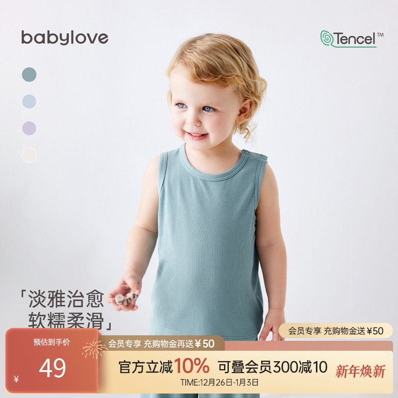 babylove婴幼儿背心夏季薄款天丝莫代尔男女宝宝无袖t恤清凉上衣