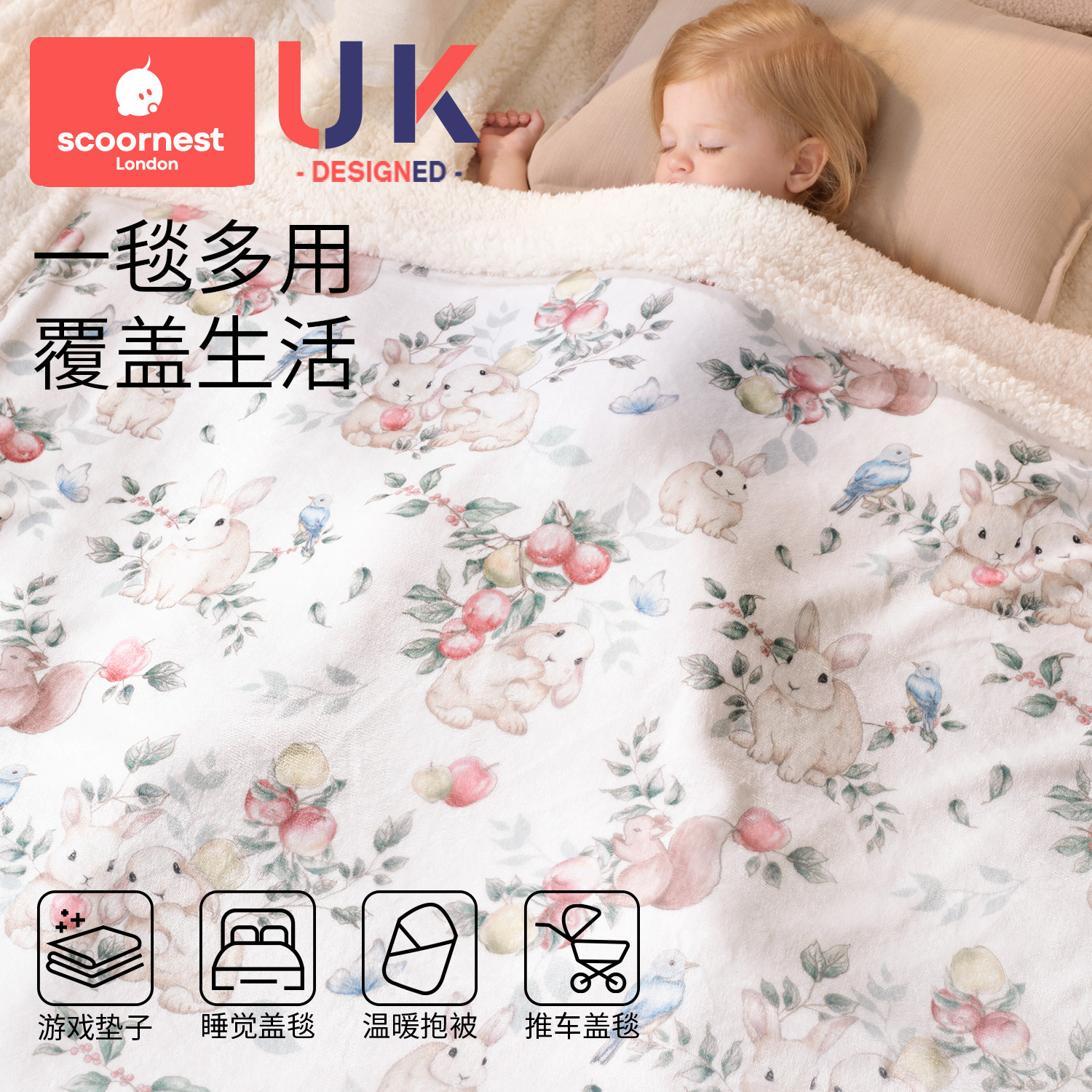 贝肽斯蚕丝豆豆毯新生婴儿盖毯宝宝专用秋冬推车绒毛毯儿童小被子