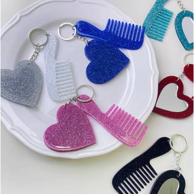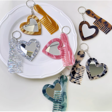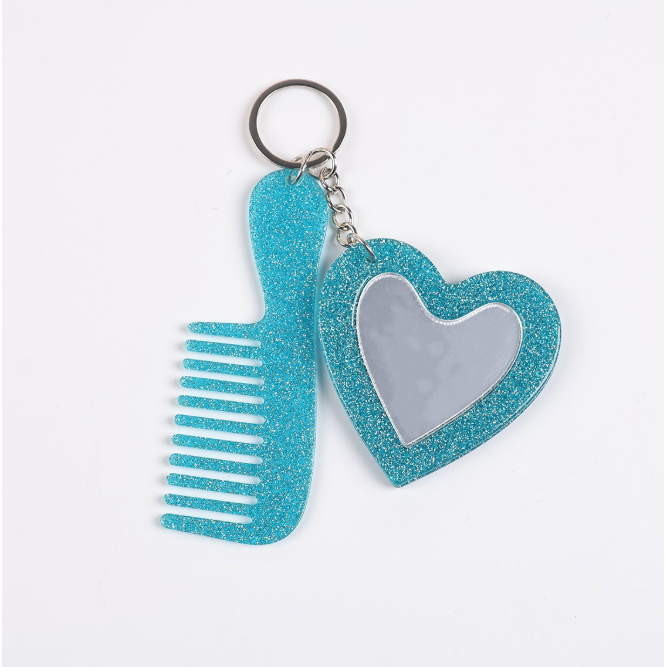 爱心化妆镜子钥匙扣闪粉亮片汽车钥匙扣包包挂饰DIY车挂饰品配件