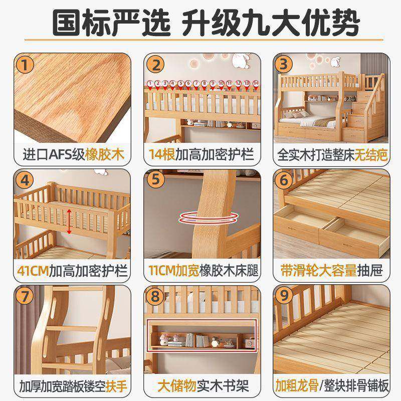 橡木实木上下床双层床加厚儿童床二层上下两层家用成人子母高低床
