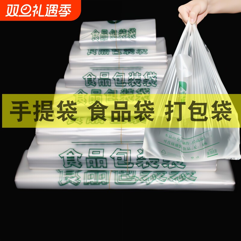 食品保鲜袋早餐一次性塑料袋透明外卖袋手提白色方便袋打包袋厨房