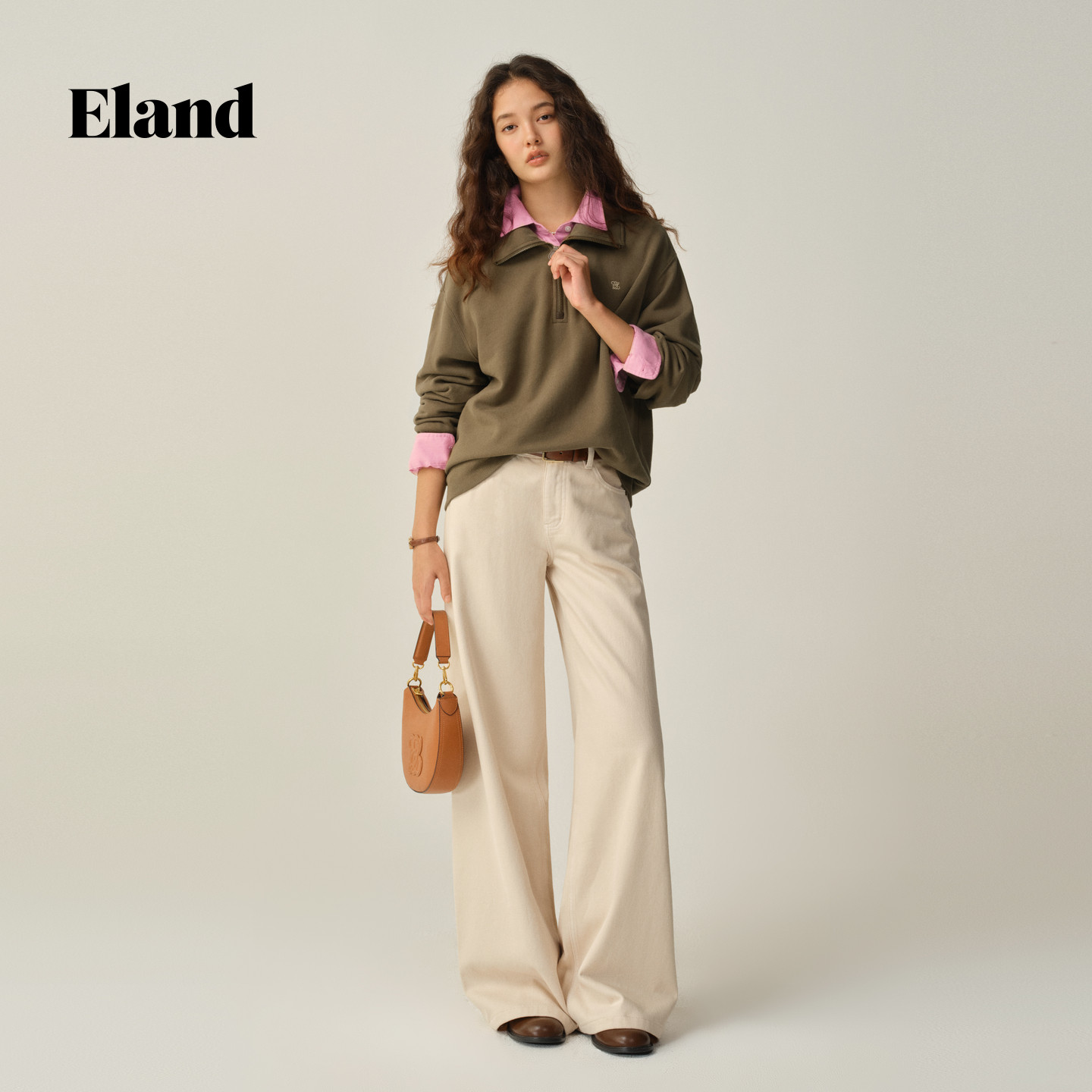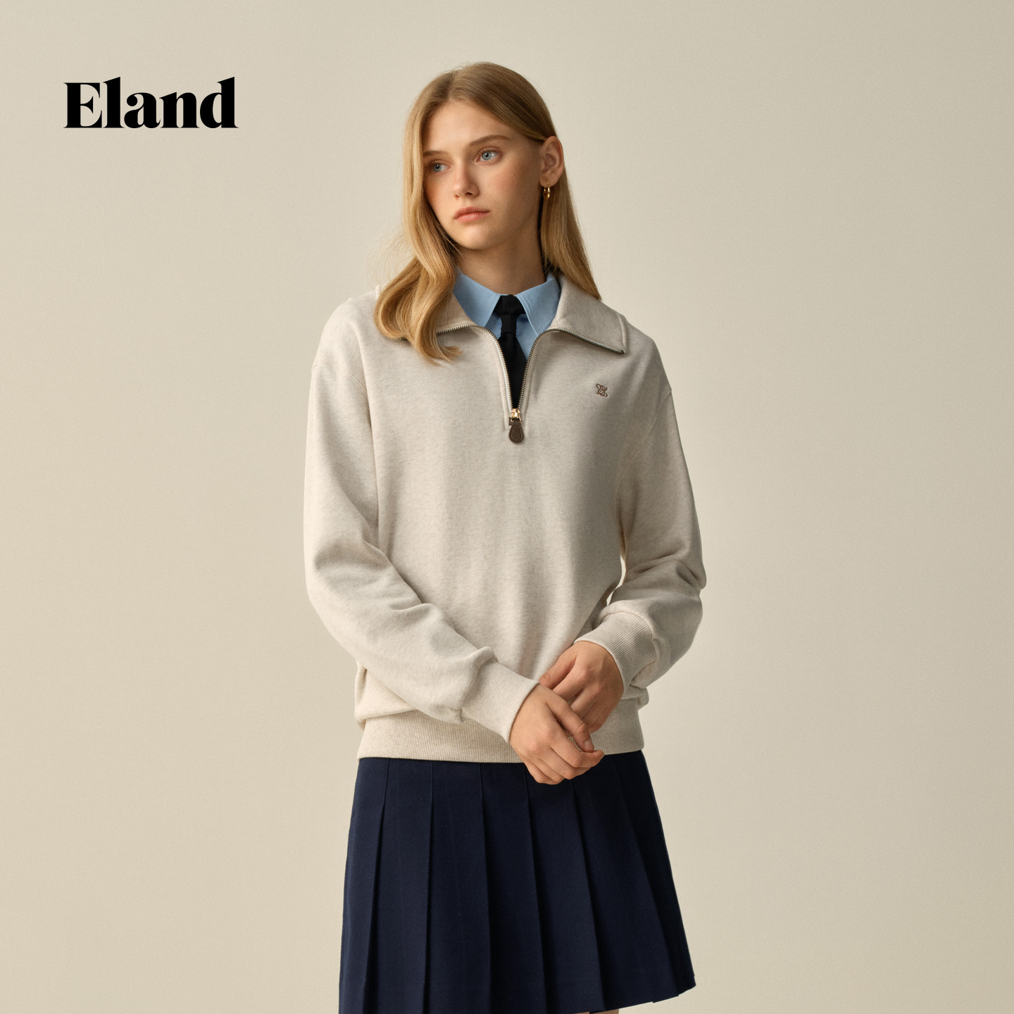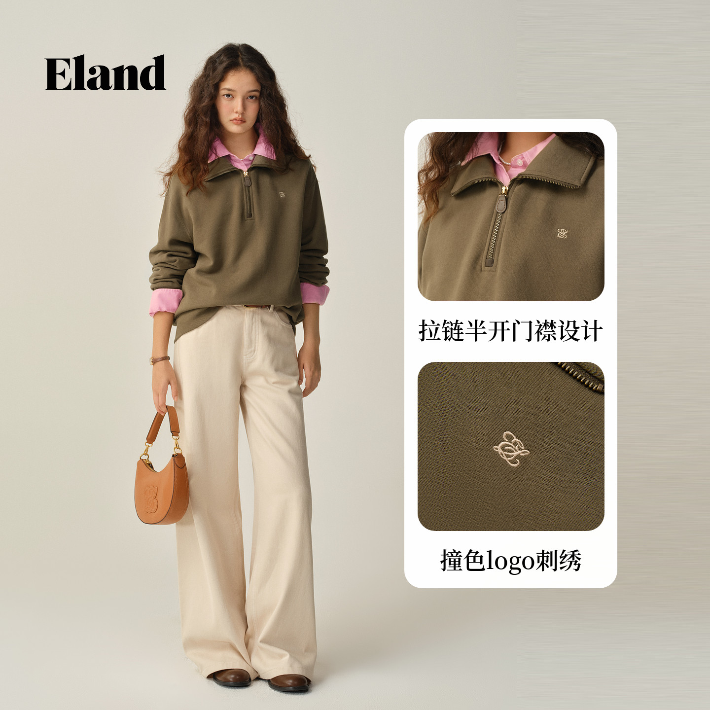 Eland衣恋卫衣女长袖翻领拉链半开衫上衣2025冬季新款