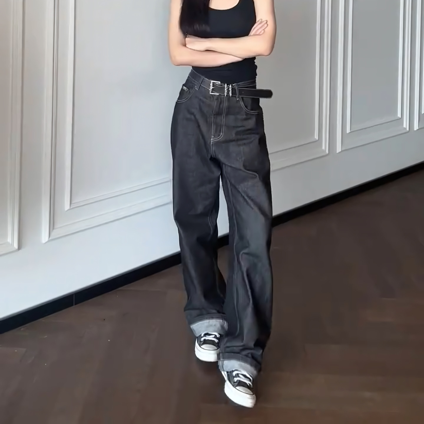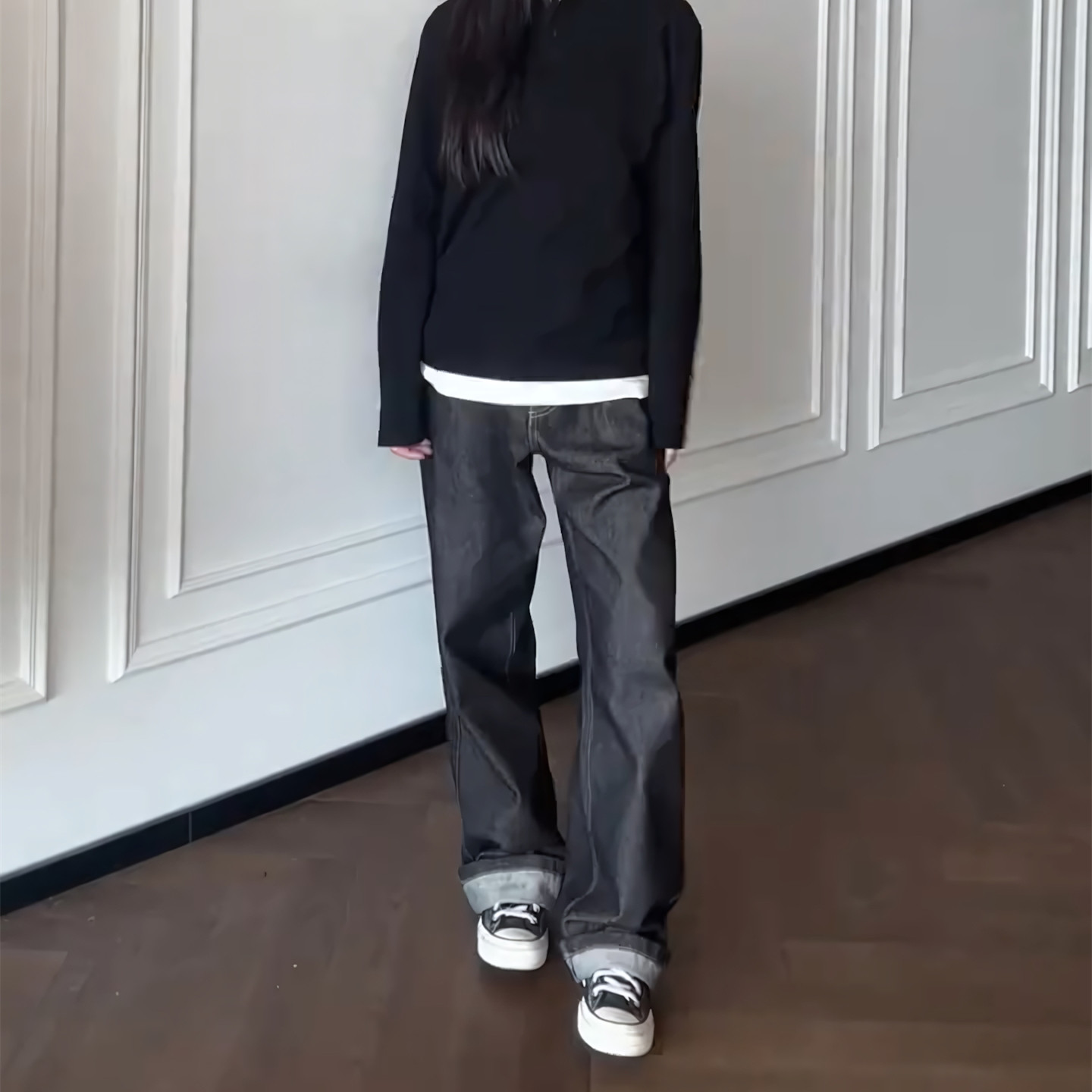 ZLAYCO 美式高街黑色牛仔裤男女vibe百搭直筒基础微喇显瘦长裤子