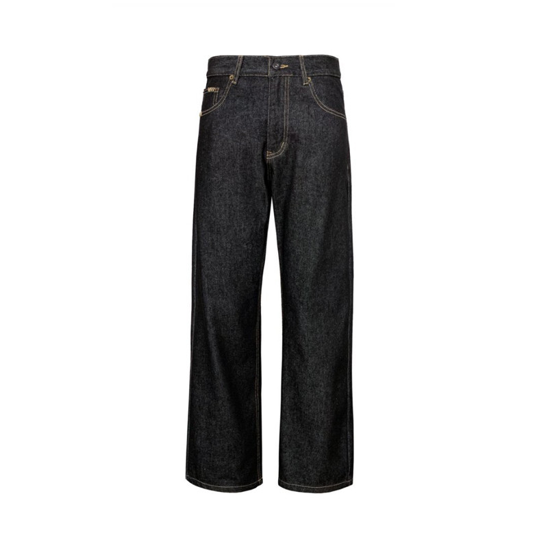 RuleByMe手缝针13盎司原牛A字直筒廓形646微喇固色牛仔裤垂感长裤