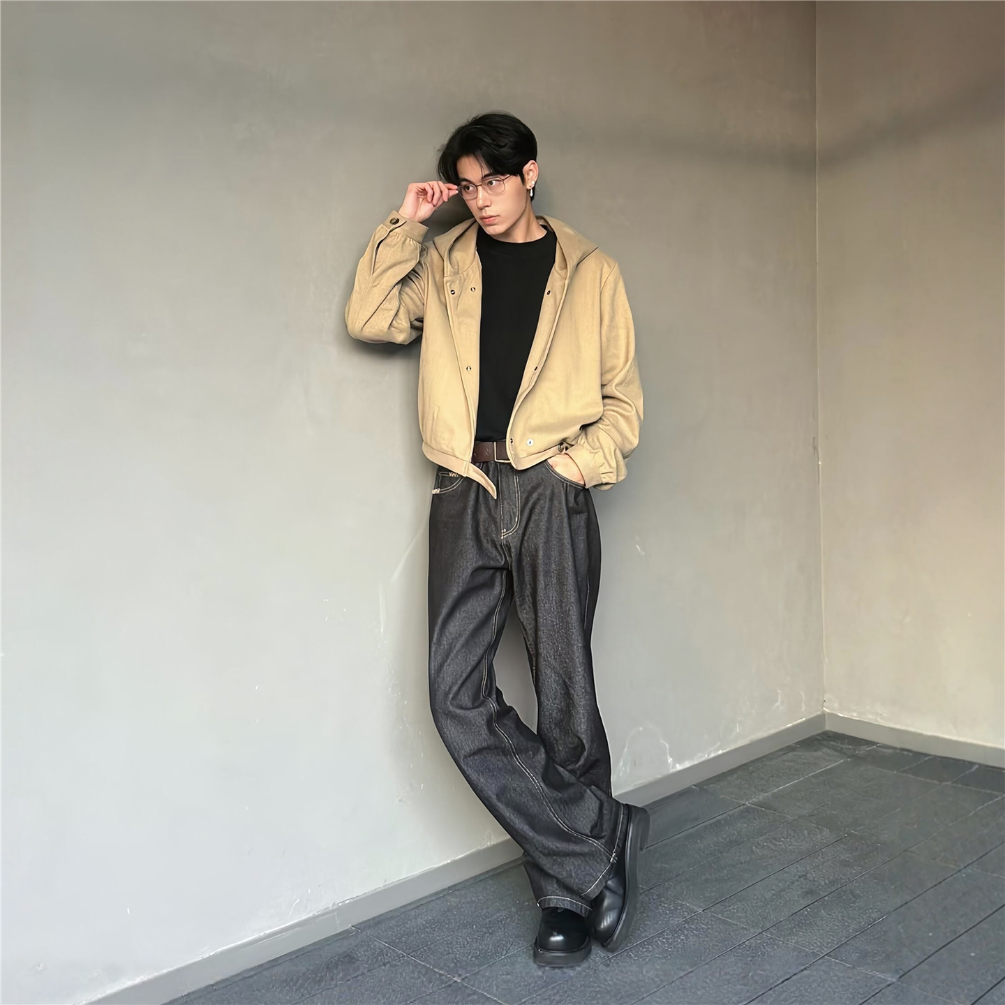 阔腿牛仔裤男士2025春秋新款美式复古宽松大码冬季休闲直筒裤子男