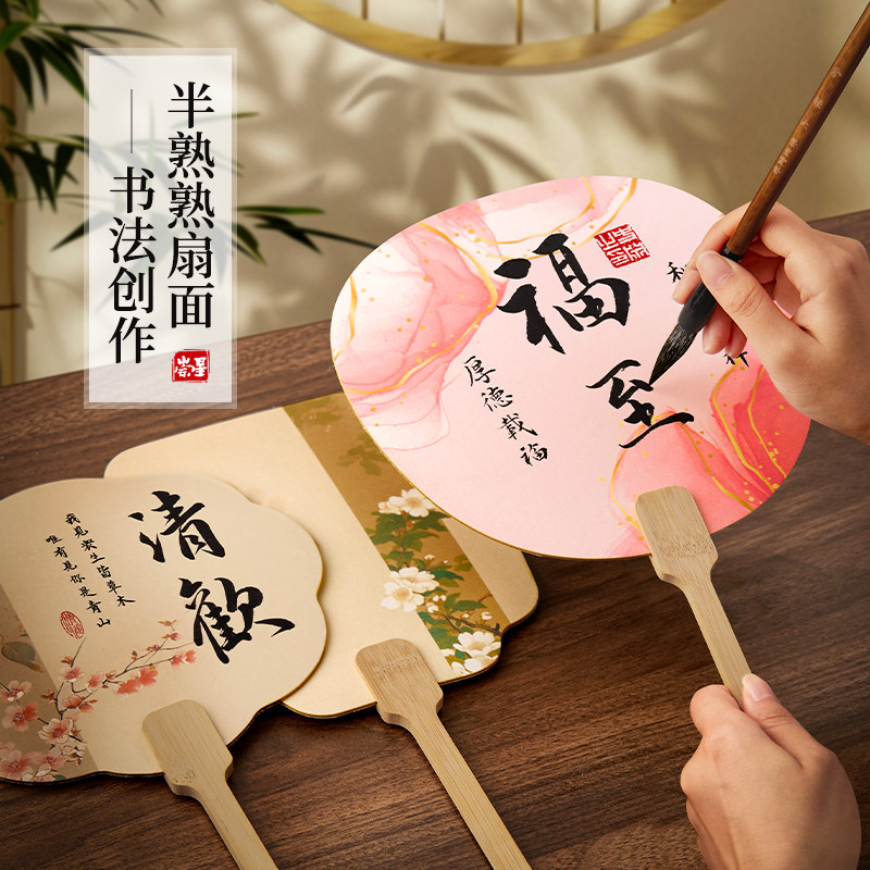 空白宣纸团扇文创书法diy扇子半生熟扇面古风书法扇汉服旗袍手持团扇拍摄摆摊道具专用舞蹈扇新中式扇子