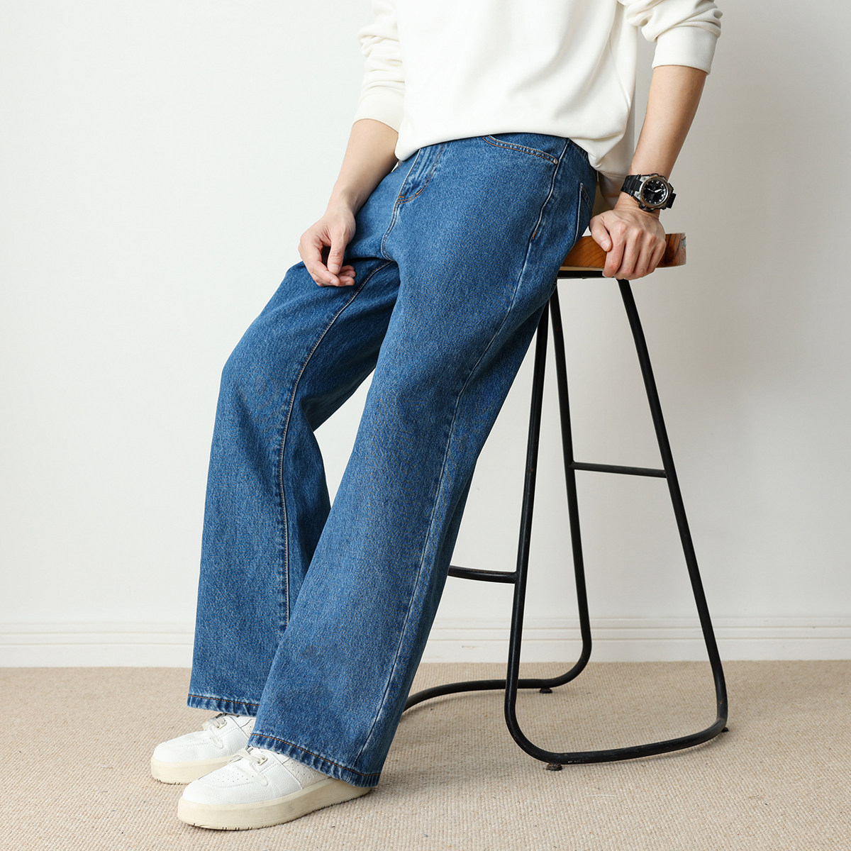 hansca439g重磅牛仔裤男款微喇2025秋季美式高街直筒宽松水洗长裤