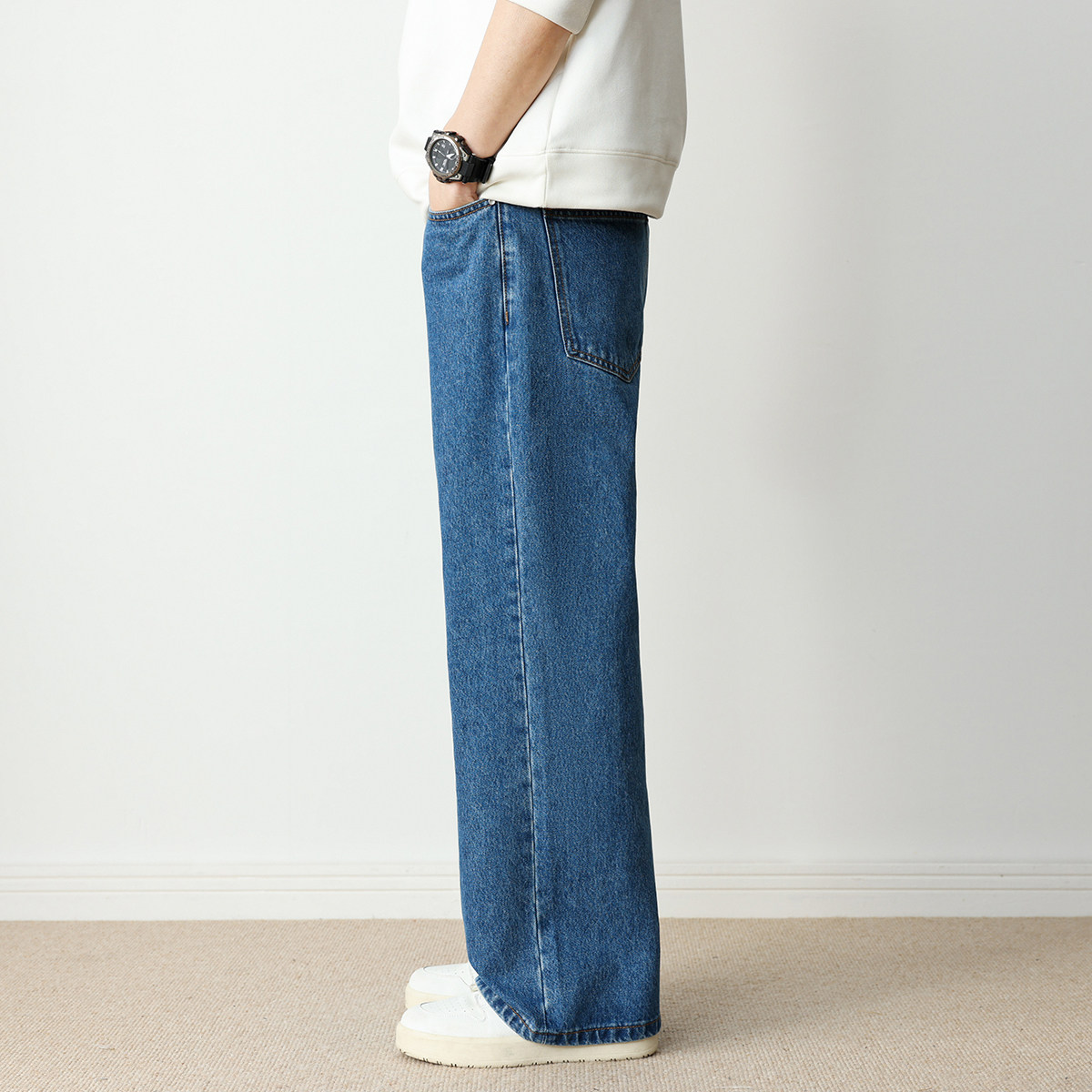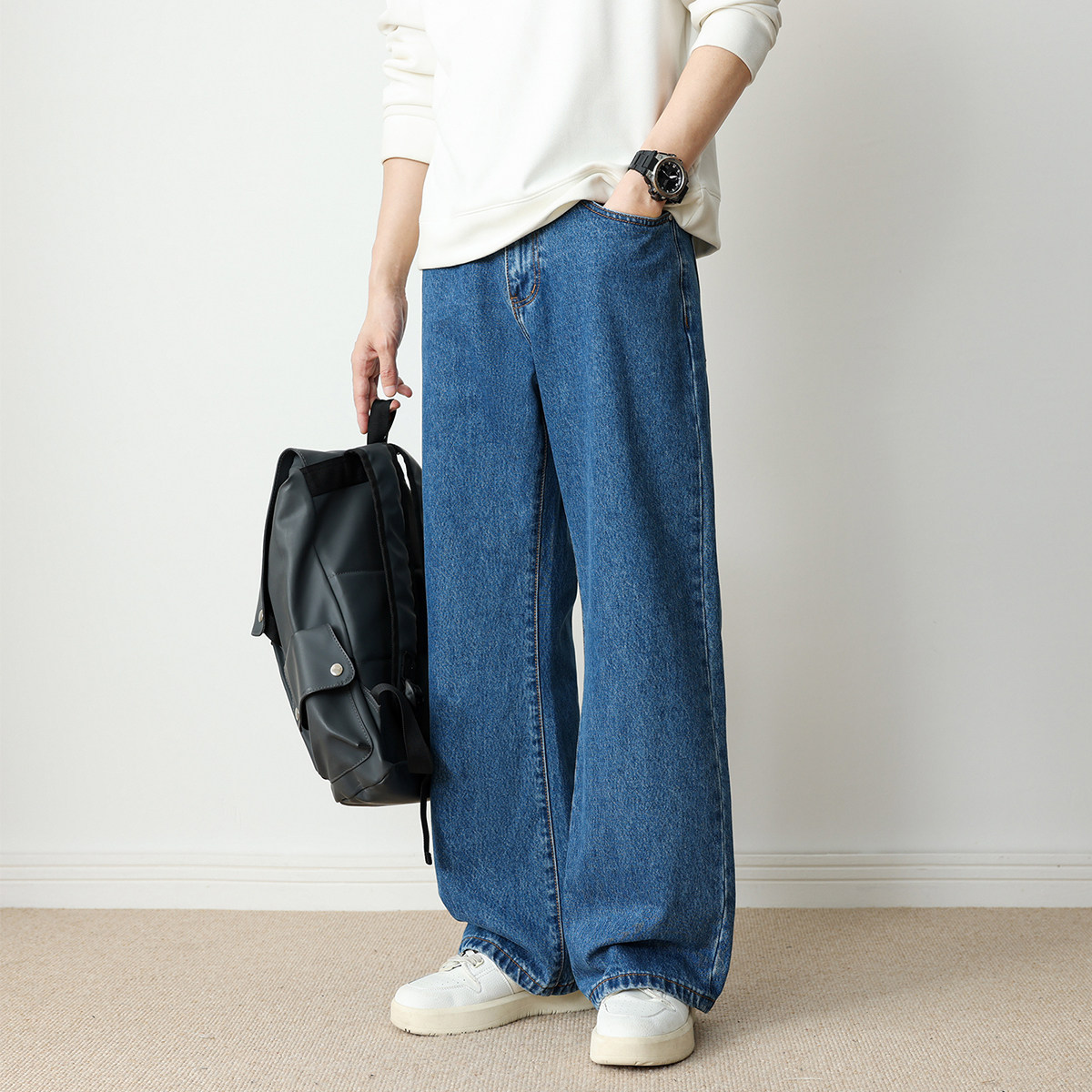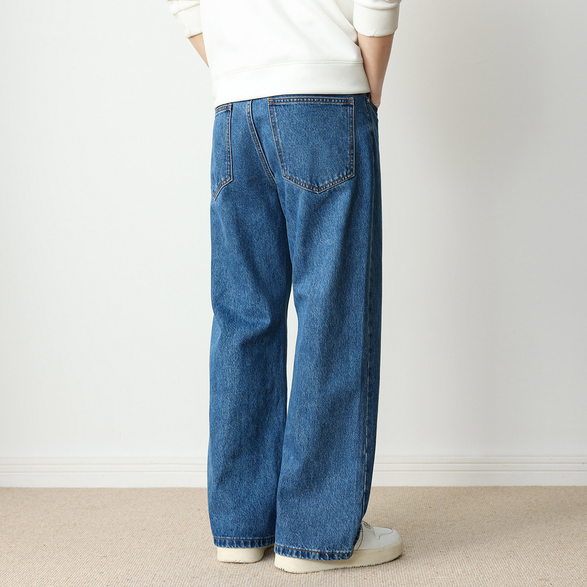森柔牛仔森马牛仔裤男裤子新款中蓝潮宽松直筒裤子男复古百搭猫须