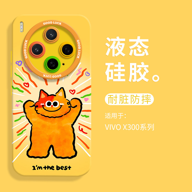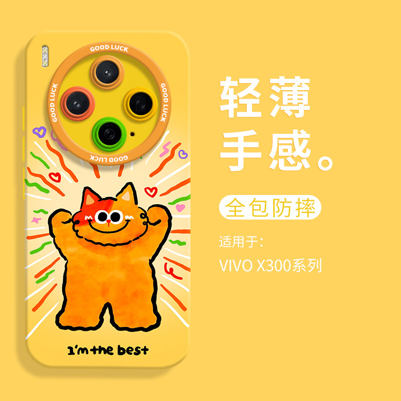 可爱自信猫猫适用vivox300新款手机壳vivox300pro瞳眼液态硅胶壳x300全包保护套VIVO男女x300pro卡通