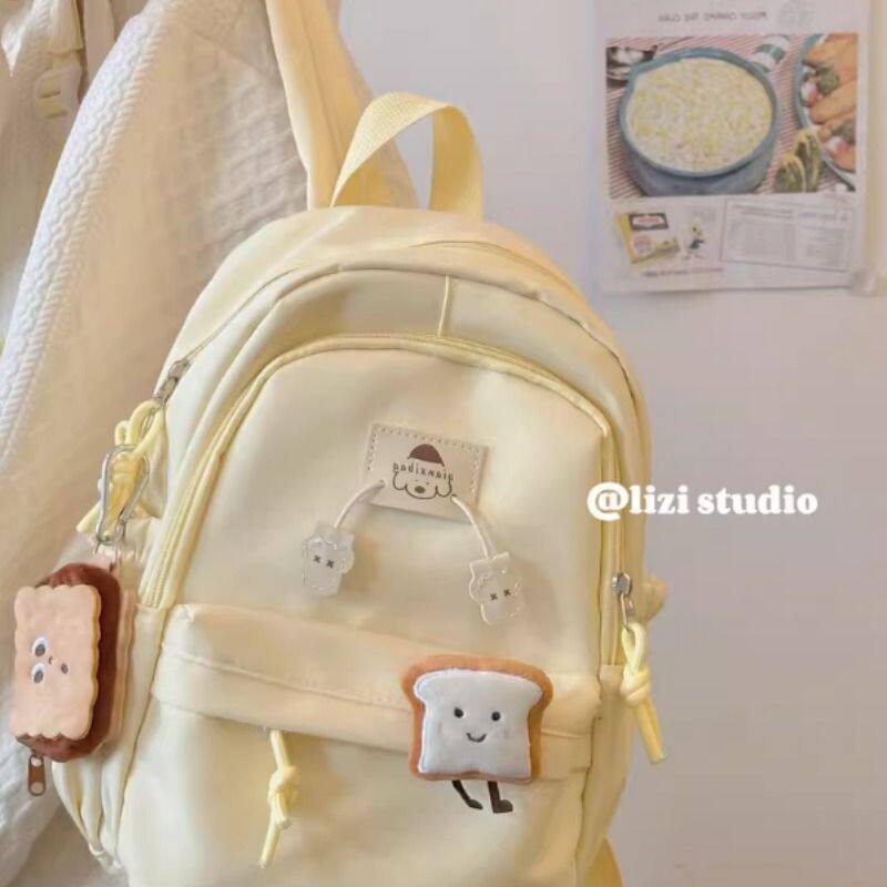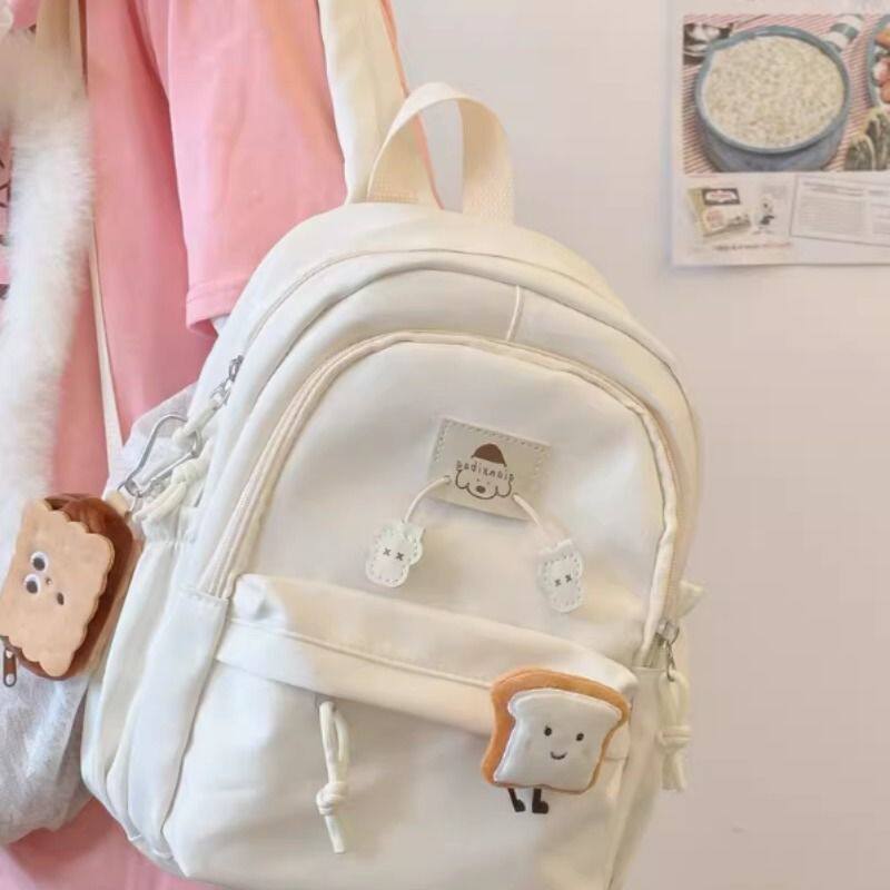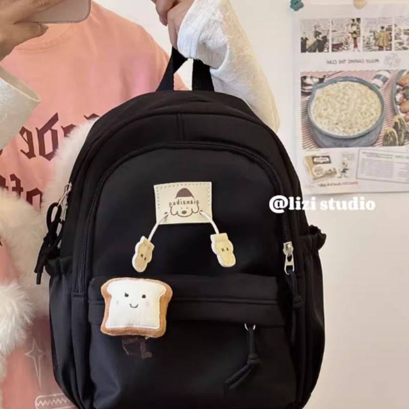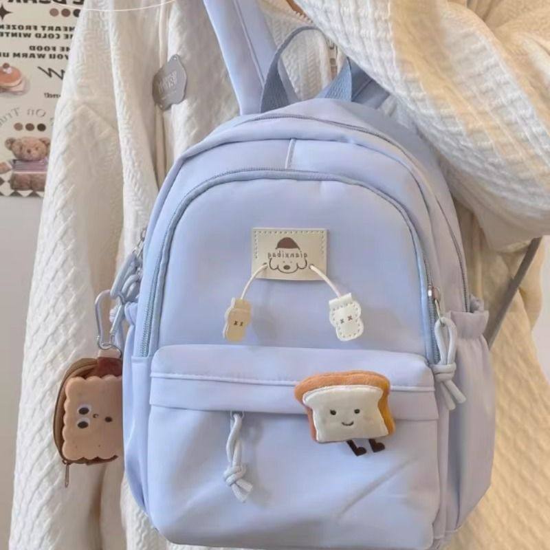 ins风可爱少女双肩包轻便妈咪包背包小书包女浅蓝色帆布防水黑色