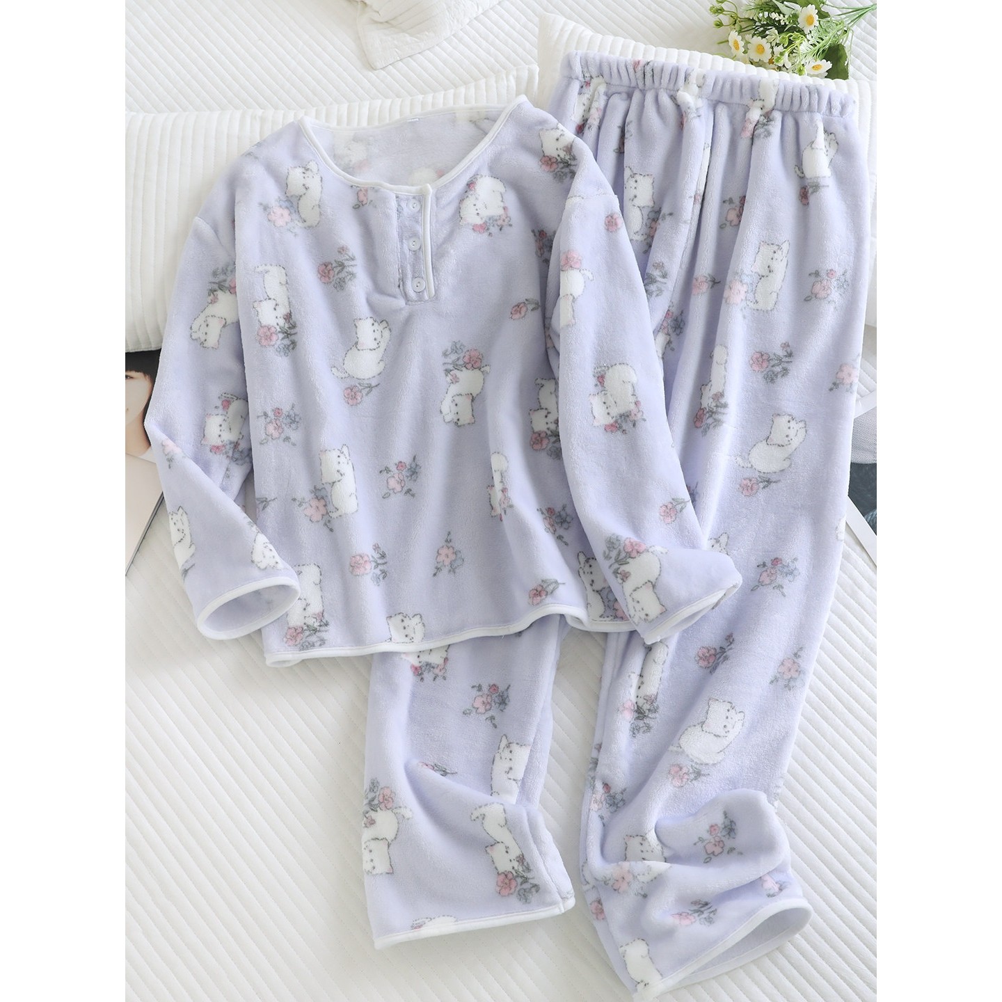 睡衣女冬季加厚保暖珊瑚绒套装2025年新款卡通秋冬款法兰绒家居服
