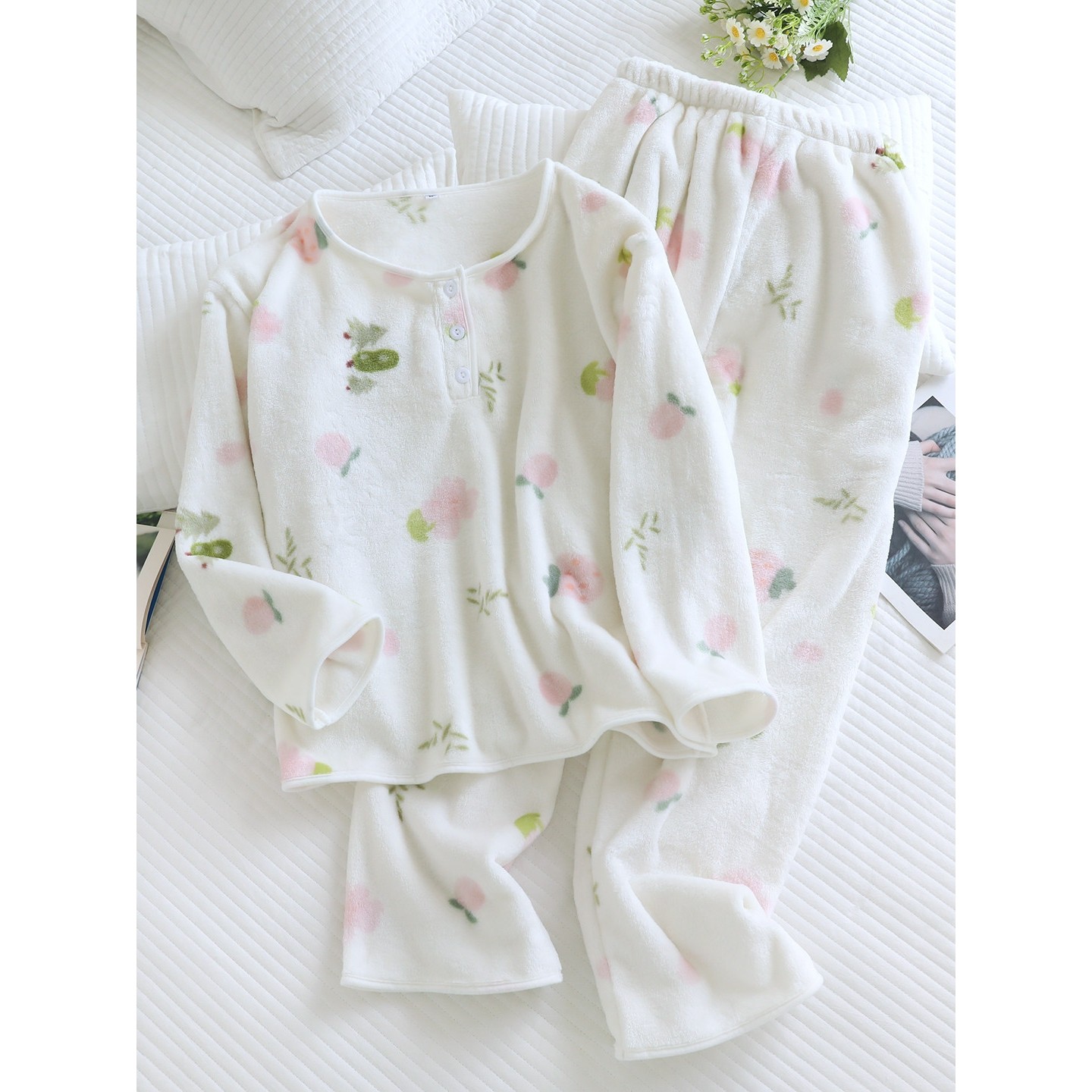 红豆珊瑚绒睡衣女冬季加绒加厚保暖2025新款冬天套头大码法兰绒家